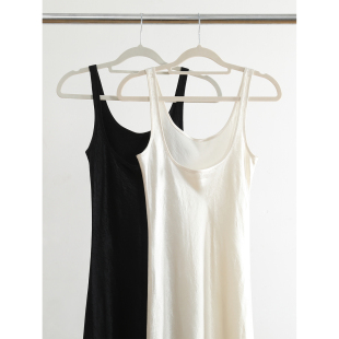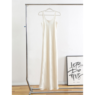 法式 大露背褶皱肌理感U领连衣裙女 复古进口三醋酸45°斜裁背心式