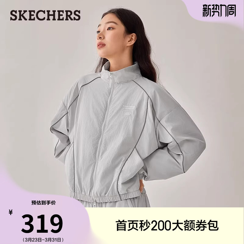斯凯奇春季 百搭宽松外套夹克防泼水休闲运动上衣外套 流行女士时尚