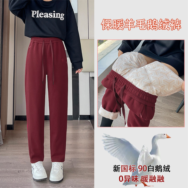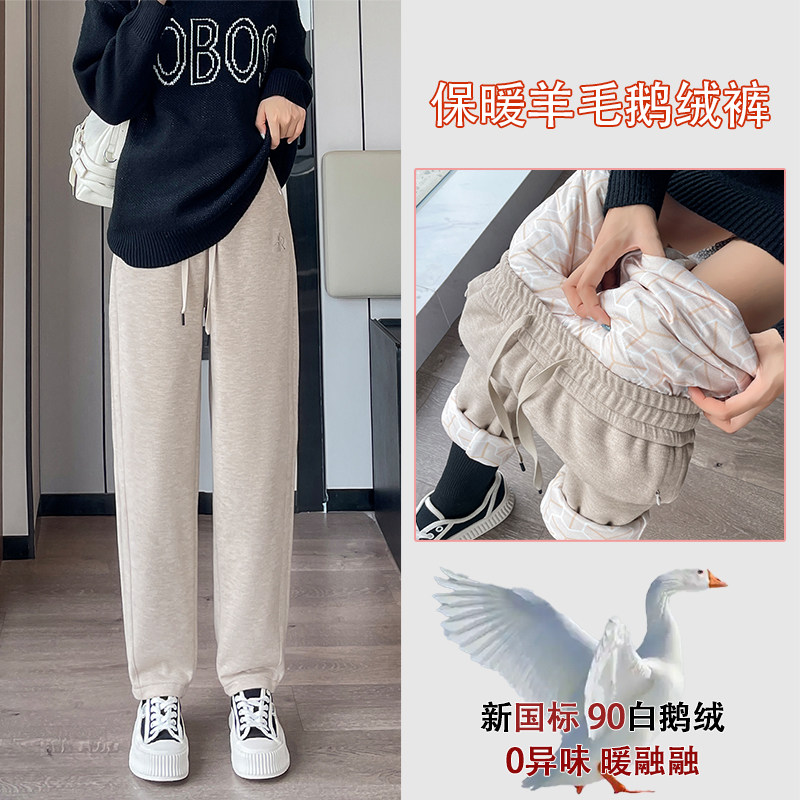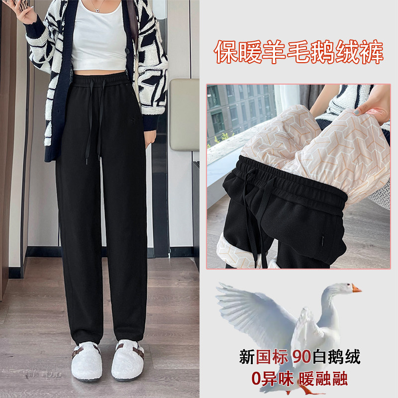 羊毛直筒裤 鹅绒羽绒裤 显瘦东北加厚保暖阔腿裤 外穿2025新款 女冬季