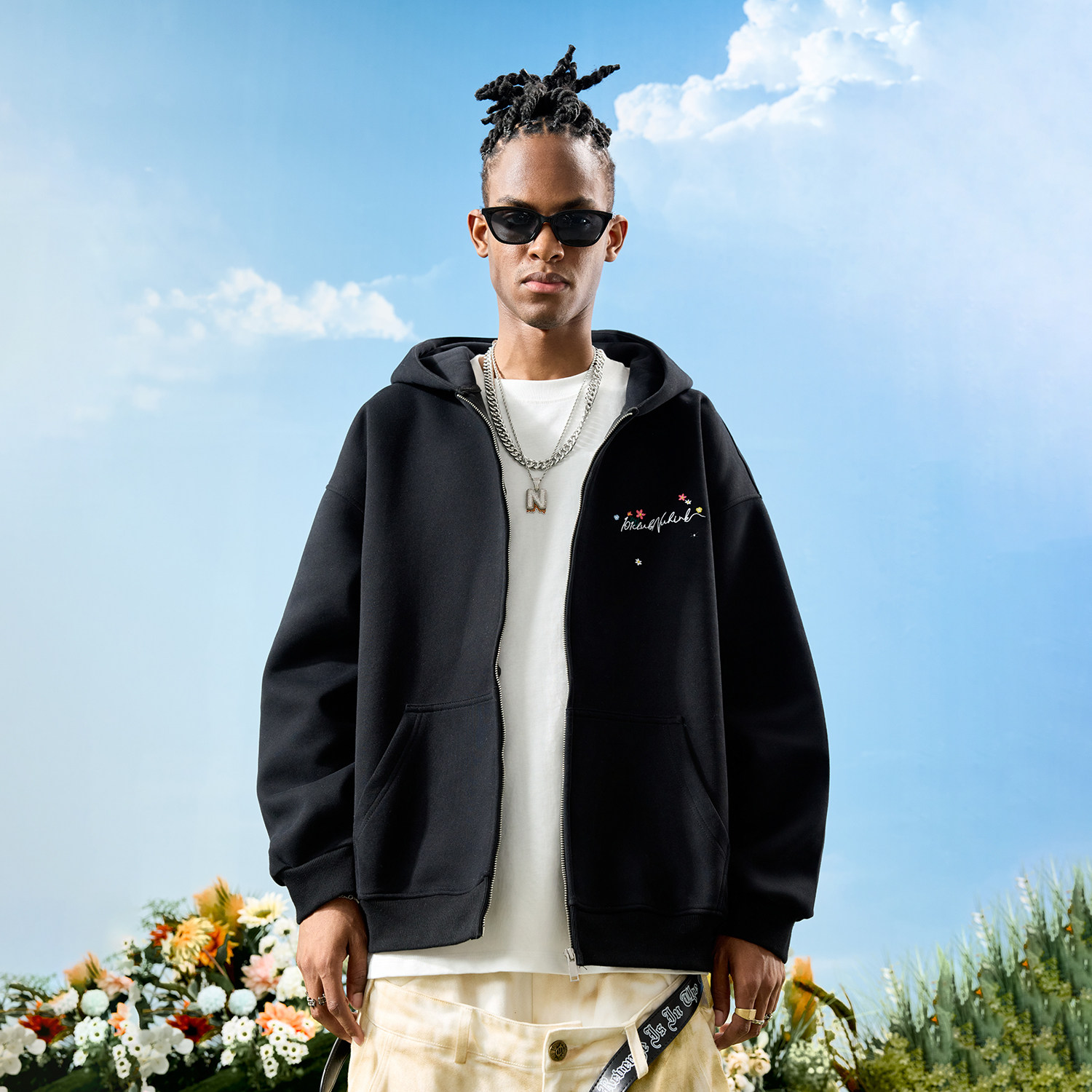 景研竣同款 连帽卫衣外套男女秋季 FDR 复古毛领开衫 上衣 美式