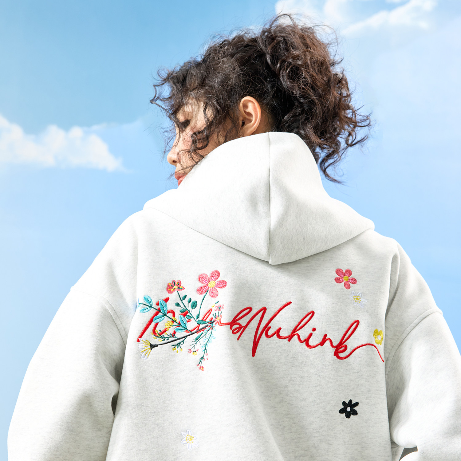 TIRED先生卡通毛巾绣连帽卫衣情侣款 加绒宽松休闲上衣 宽松套头衫