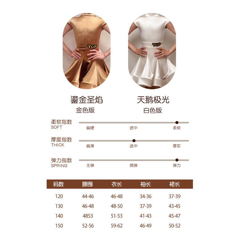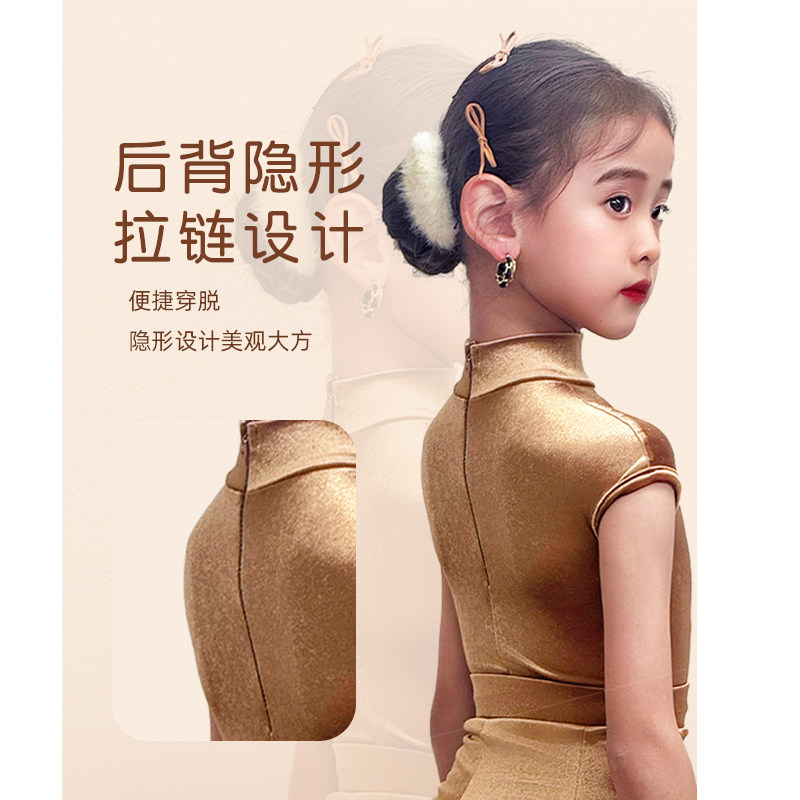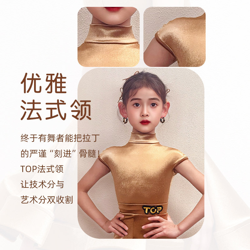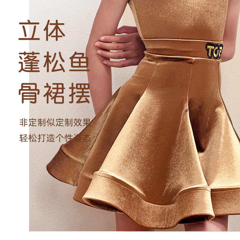 TOP拉丁舞服女童专业规定服小高领包肩袖 丝绒比赛服大裙摆鱼骨裙