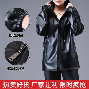 春秋防水防油大码 套装 宽松外卖骑行干活劳保外套 连帽皮衣皮裤 女式