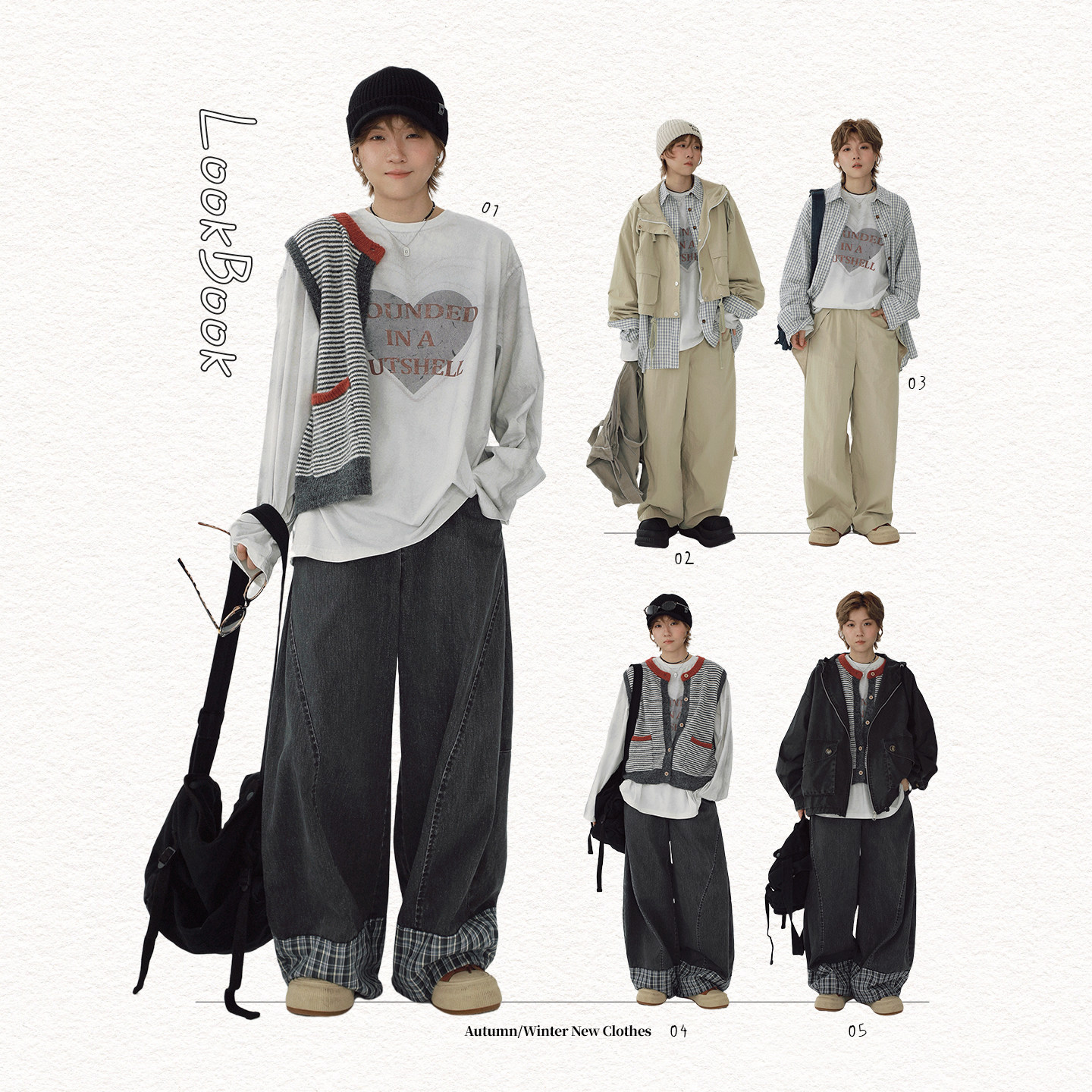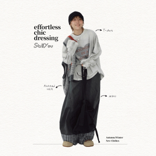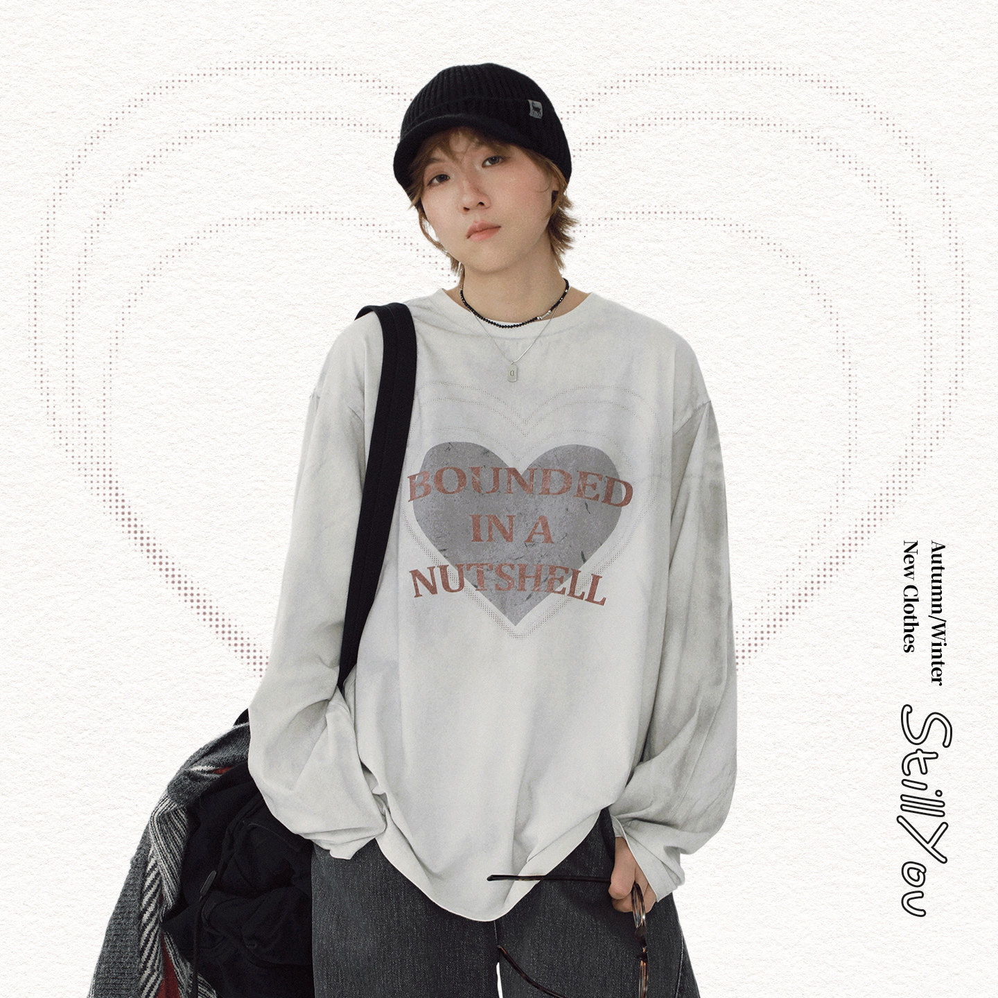 STILLYOU街头脏染废土爱心印花圆领长袖 shirt新韩 T恤女百搭千禧t