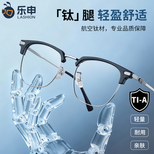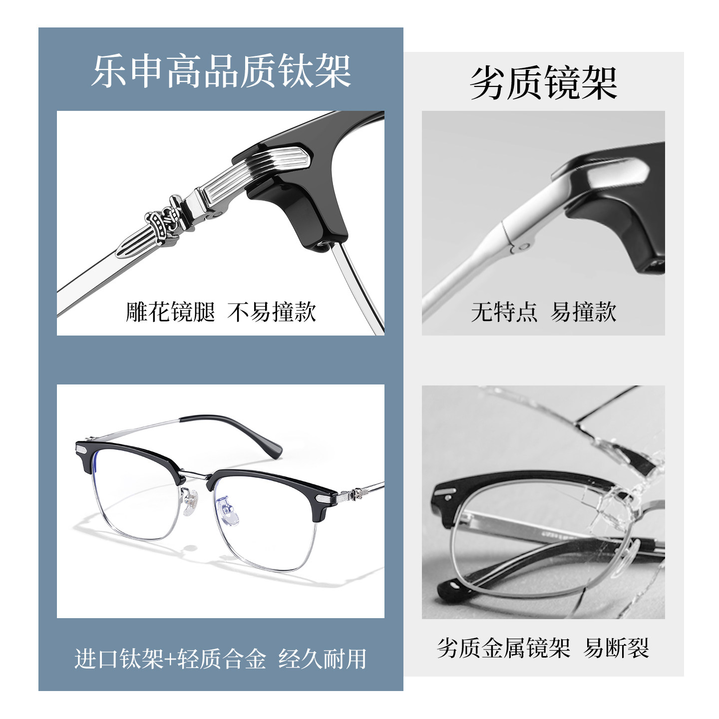 乐申纯钛半框近视眼镜框男款 蔡司镜片可配度数超轻钛架大框眉线框
