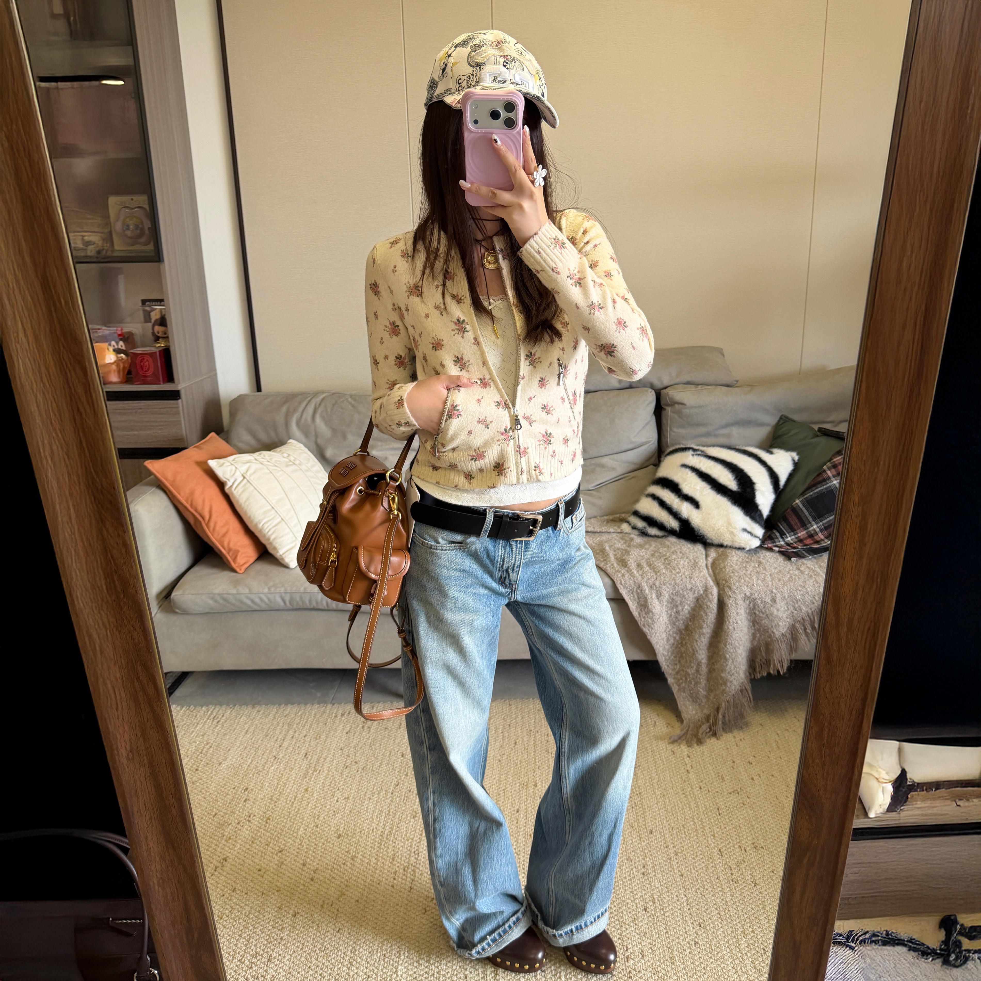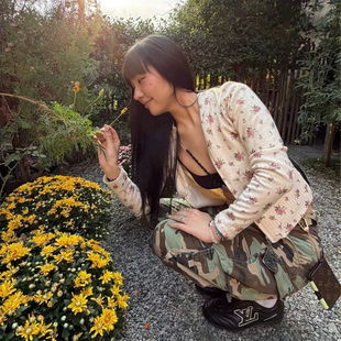 短款 CHEN 女修身 百搭休闲上衣 复古浪漫玫瑰花撞色针织开衫 DUE