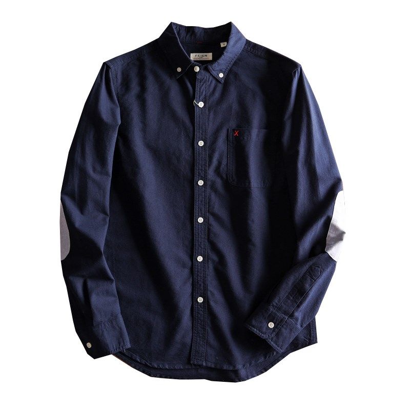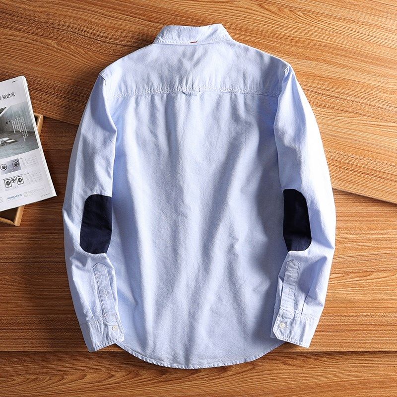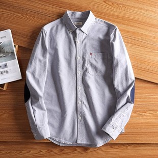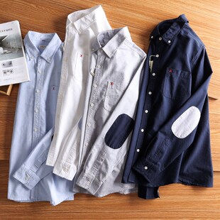 衬衫 肘贴布补丁时尚 h男长袖 休闲牛津纺袖 白色衬衣 大码 日单新款