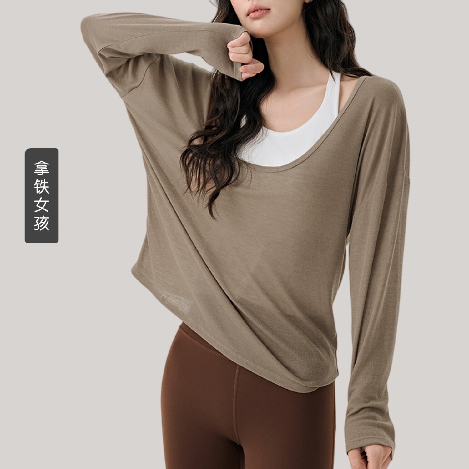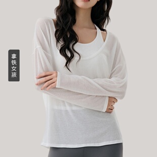 裸感 薄款 拿铁女孩运动上衣瑜伽服长袖 T恤健身服跑步外穿显瘦罩衫