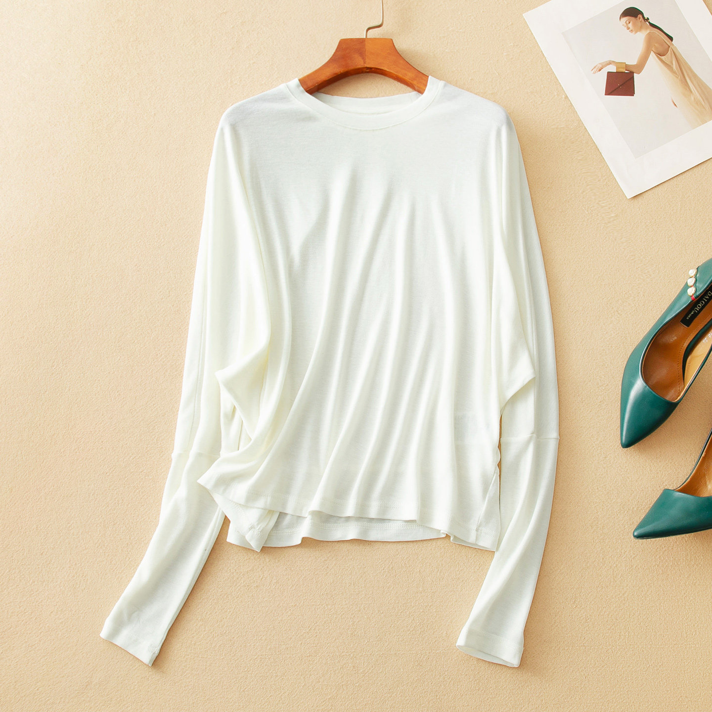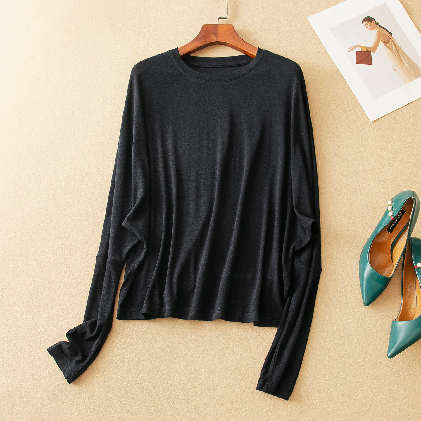 蛮文 轻柔弹醋酸羊毛莱赛尔慵懒显瘦蝙蝠袖 巧设计 57163 好面料