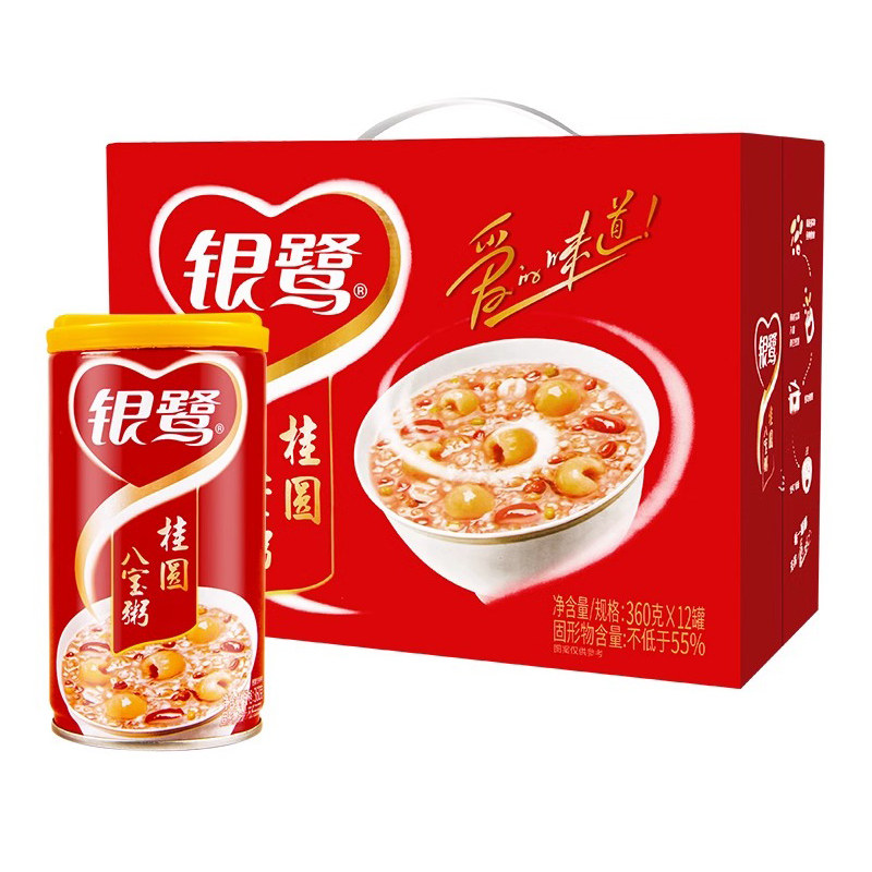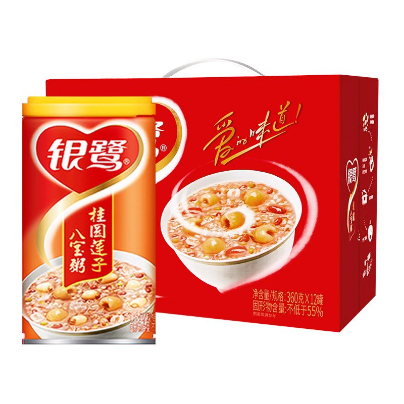 银鹭八宝粥桂圆莲子360g罐装 低糖大罐 早餐速食粥五谷杂粮整箱装