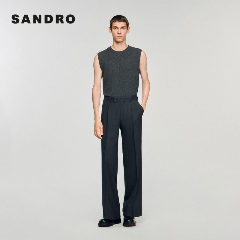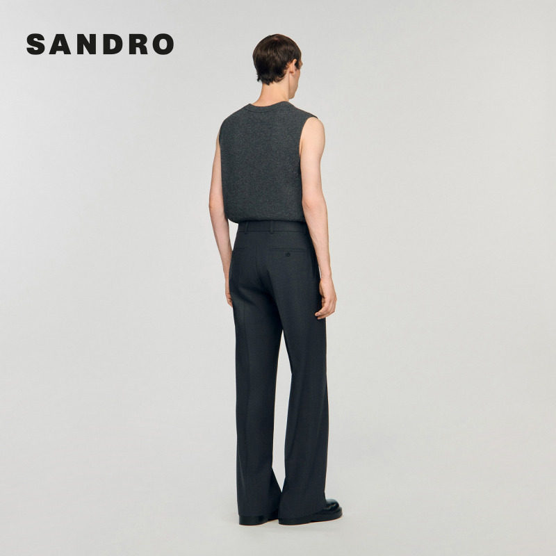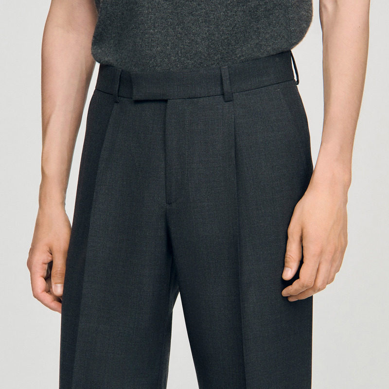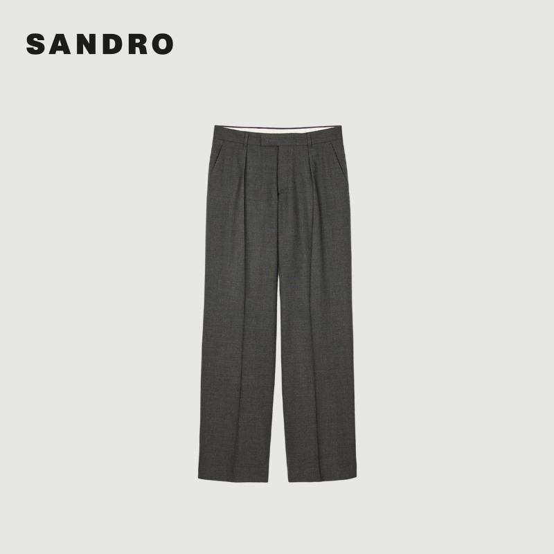 末6折SANDRO2025秋冬男装 裤 法式 碳灰色绵羊毛直筒阔腿西装 时尚 季