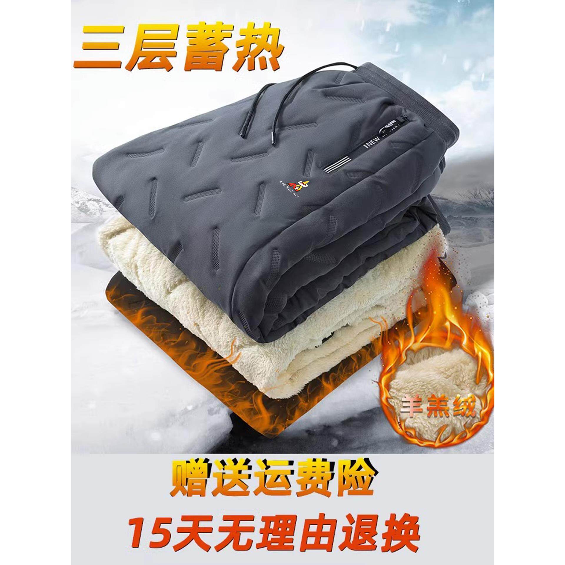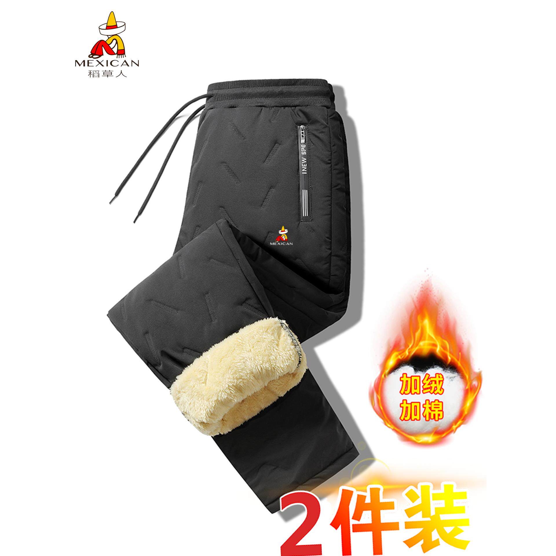 保暖直筒休闲棉裤 稻草人冬季 羊羔绒加厚加绒防风大码 男士 男 羽绒裤
