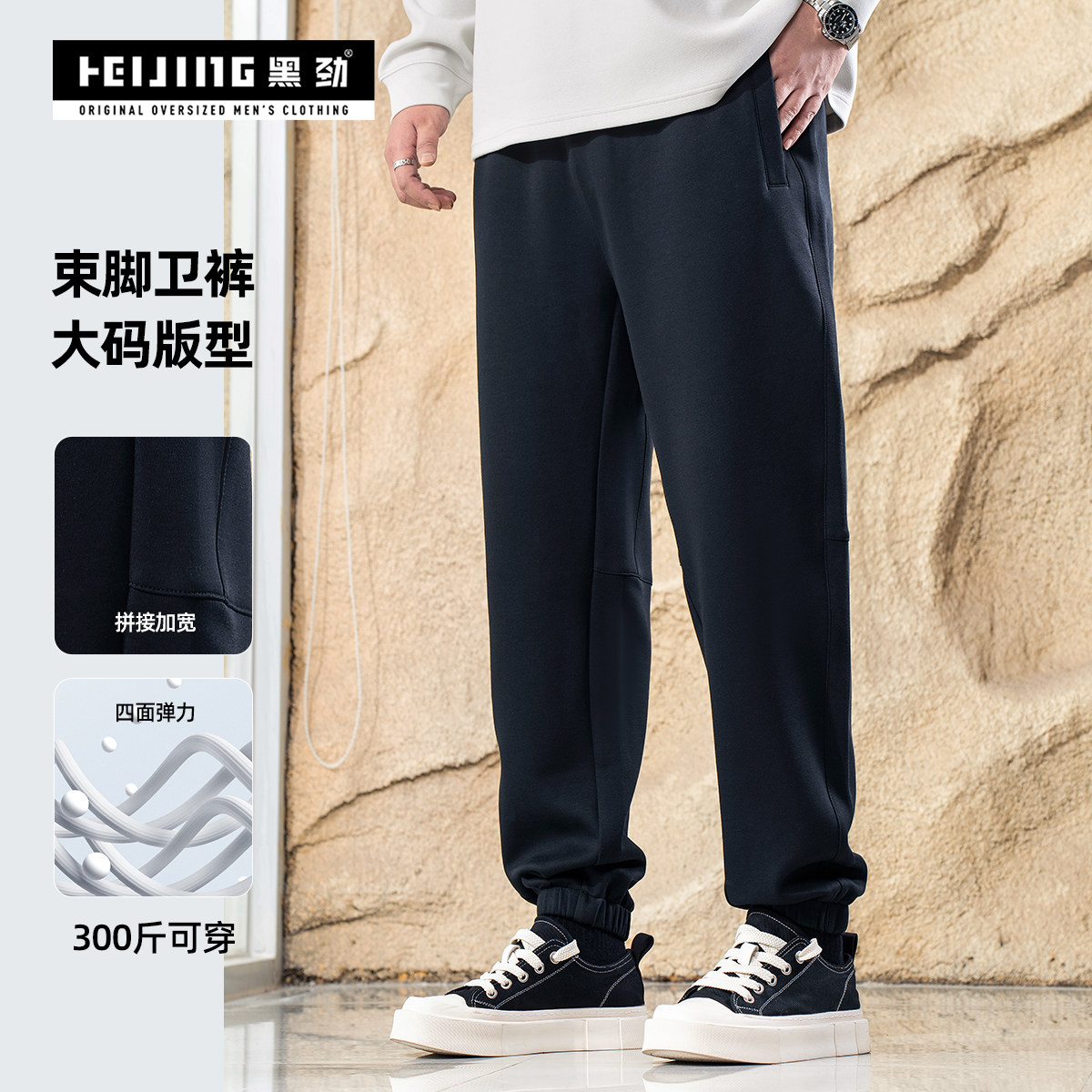 男装 胖子束脚裤 加裆休闲裤 加绒加肥加大宽松运动裤 冬季 黑劲大码
