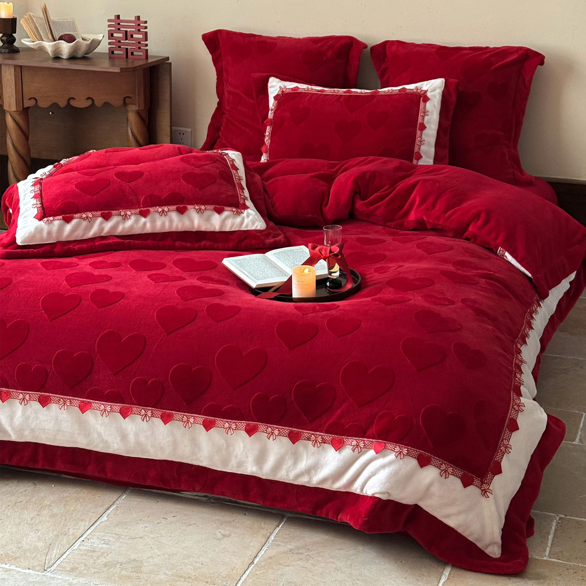 婚庆四件套婚嫁新婚床品刺绣被套红色结婚礼婚房婚床喜庆中式 套件