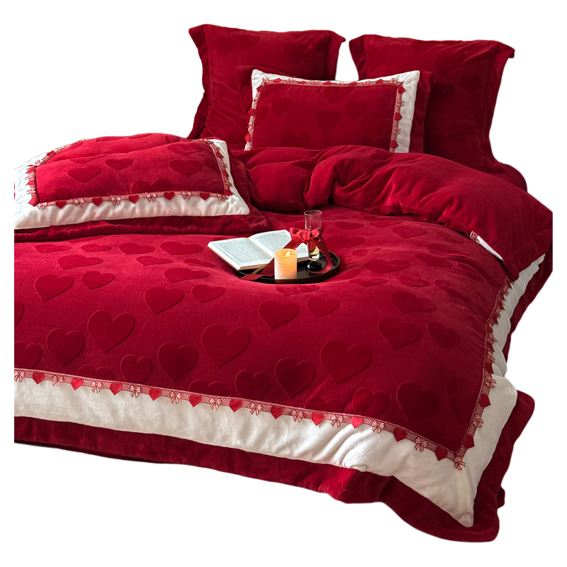 浪莎全棉婚庆四件套新婚床品多件套纯棉被套大红结婚房喜庆套件