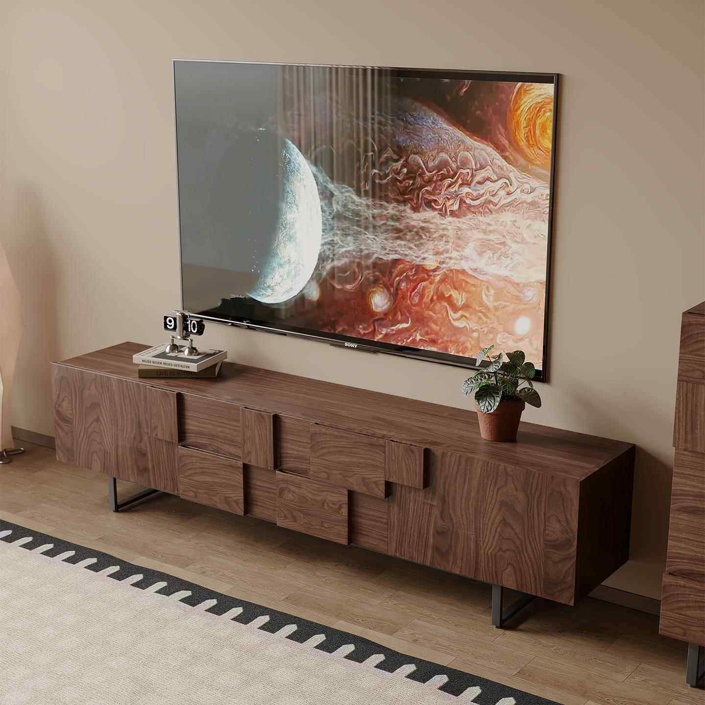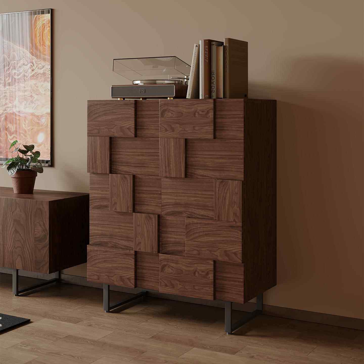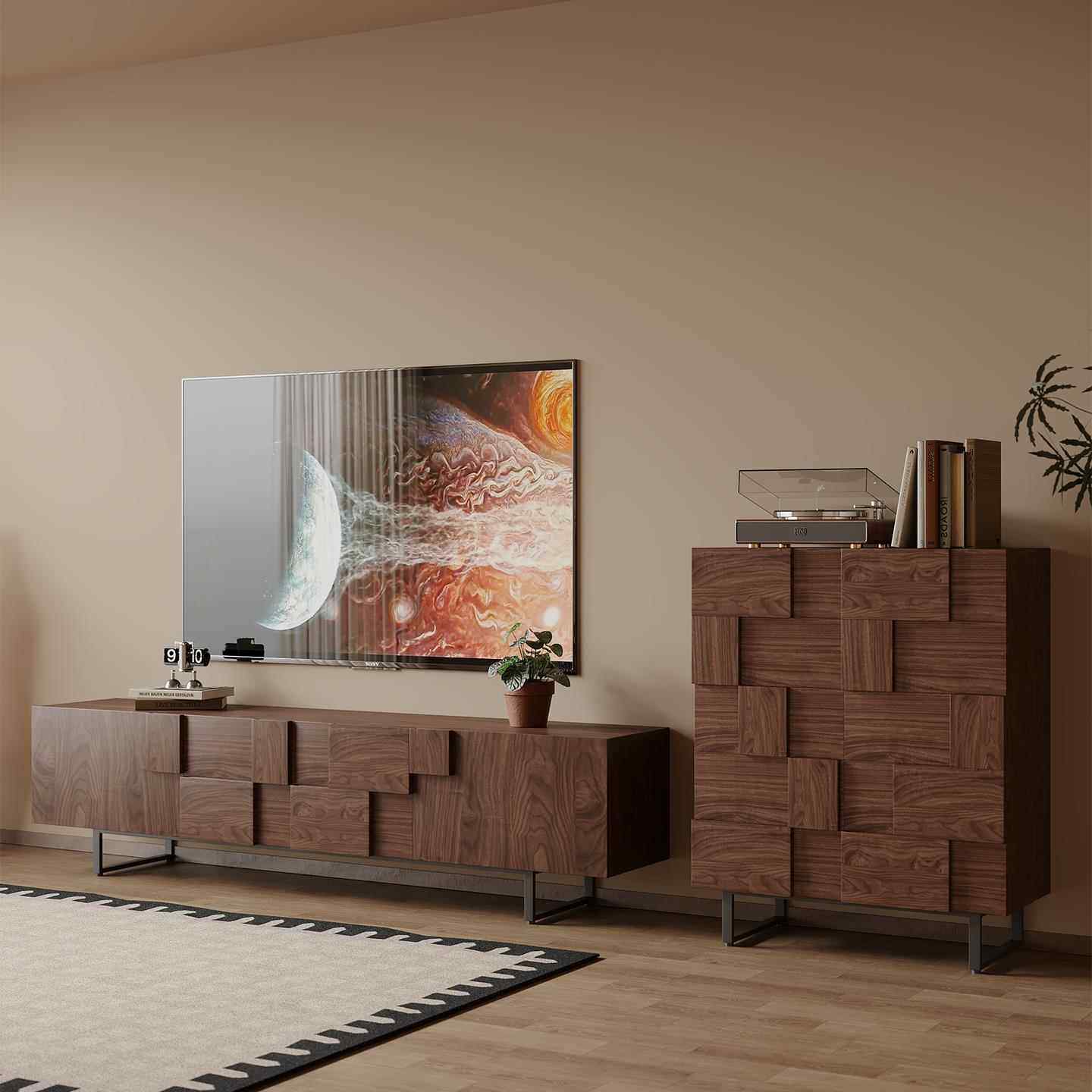 宏特维中古风实木电视柜 胡桃木斗柜落地收纳视听柜客厅摆件饰品