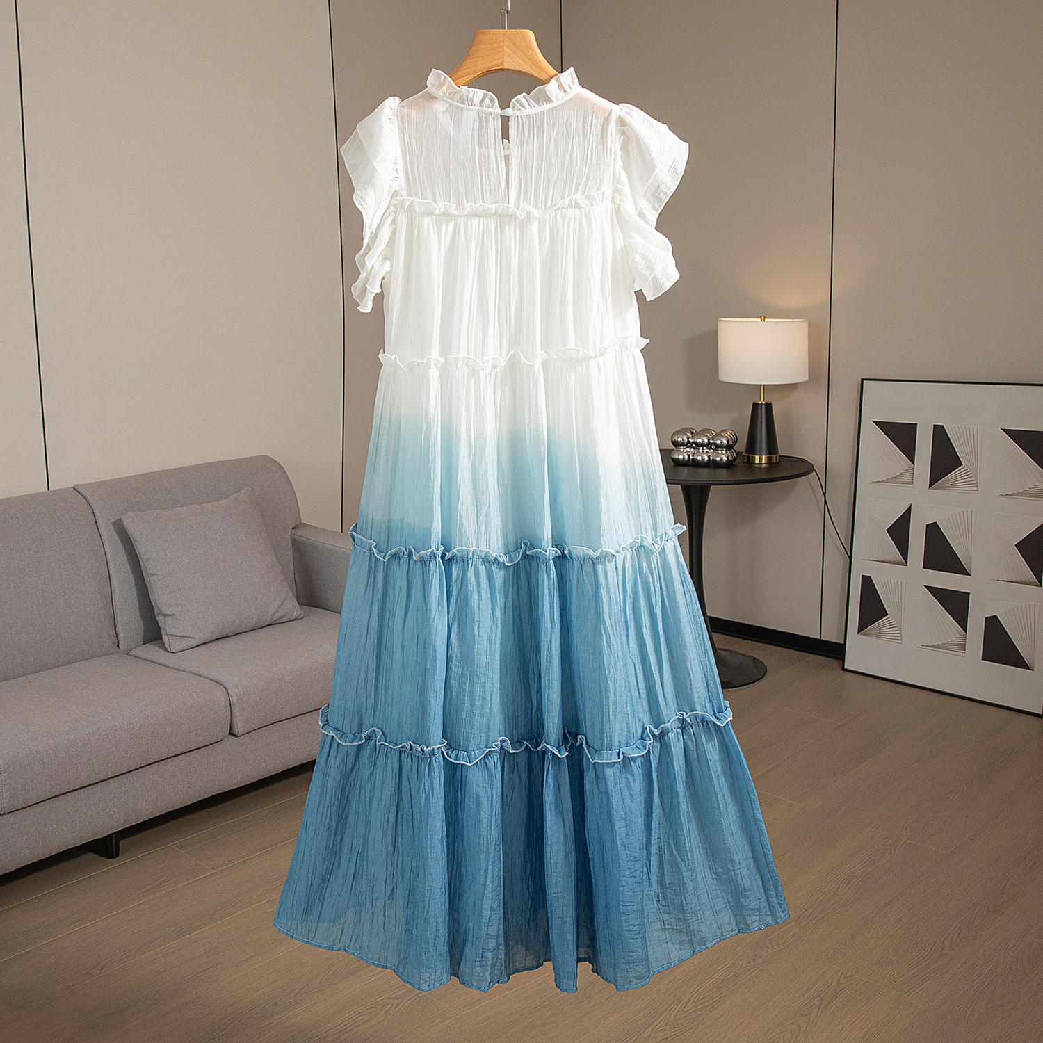 云南古法扎染法式 连衣裙女夏甜美木耳边减龄天丝公主 小香风飞袖