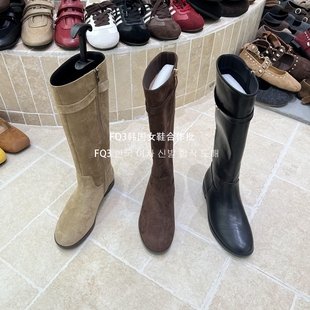 靴皮靴 时装 吴宣仪天美意千金靴复古厚底骑士靴加绒长靴女鞋 子新款