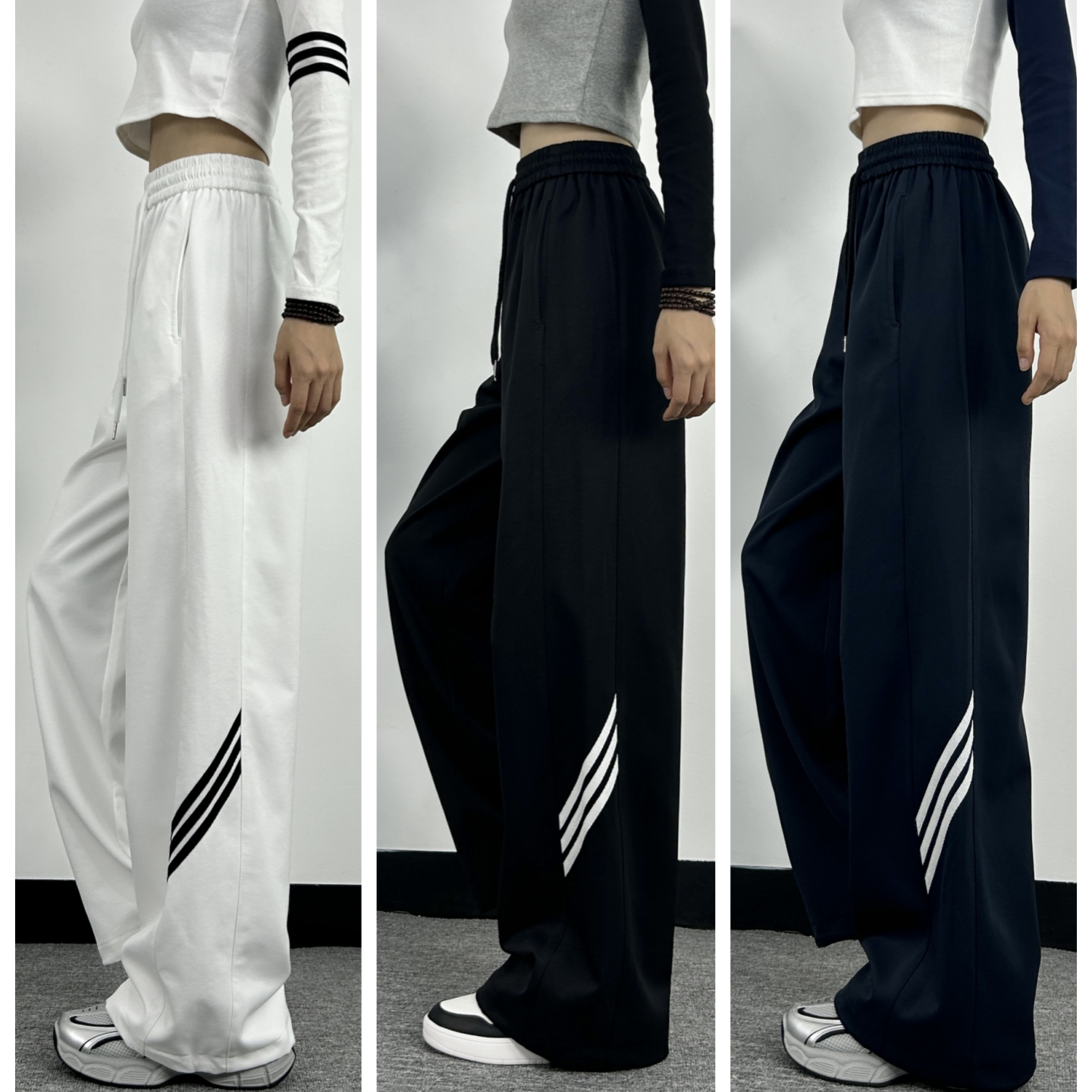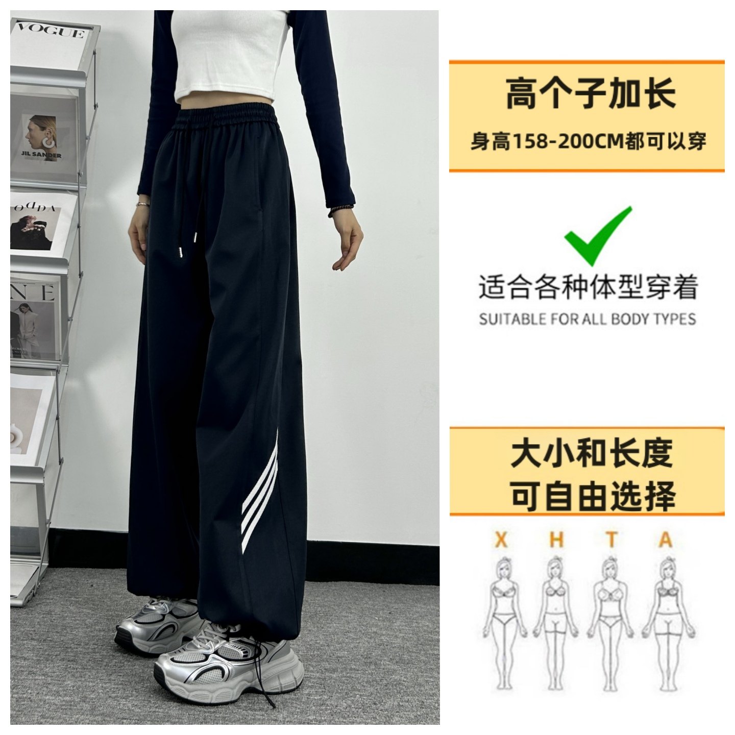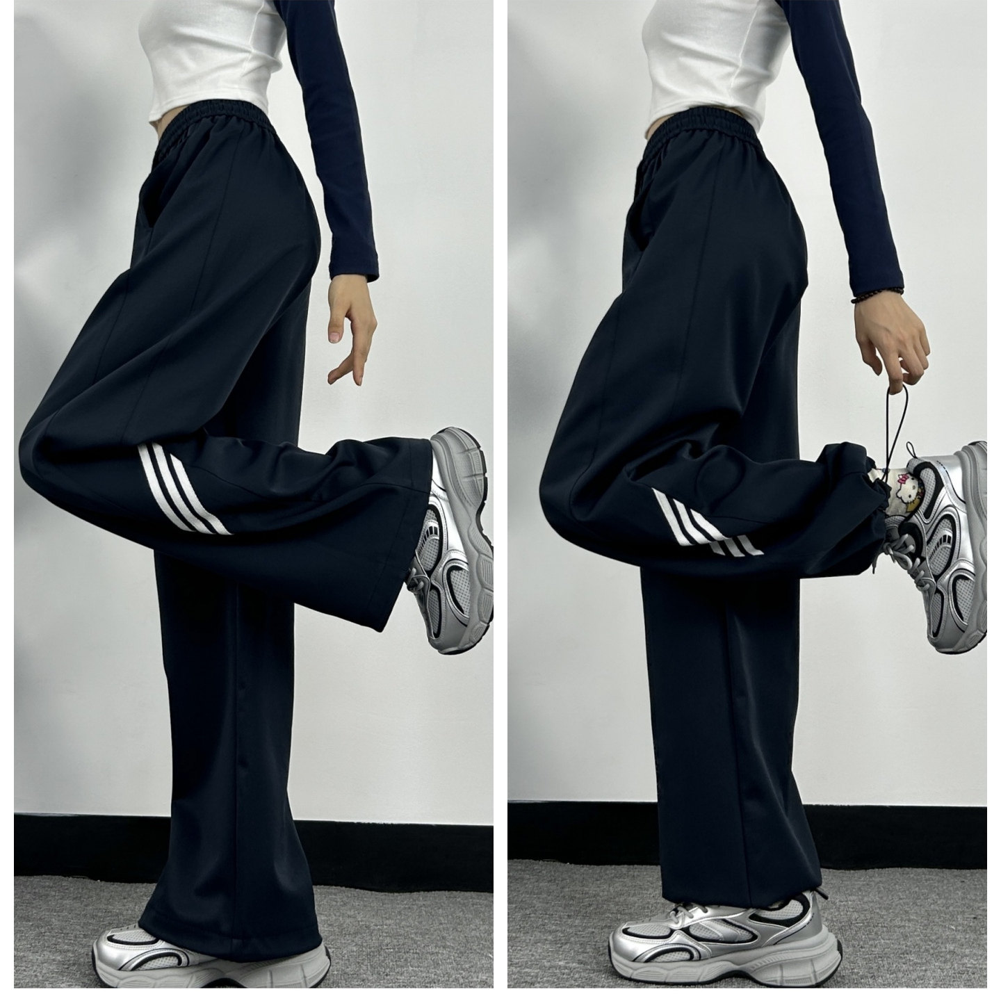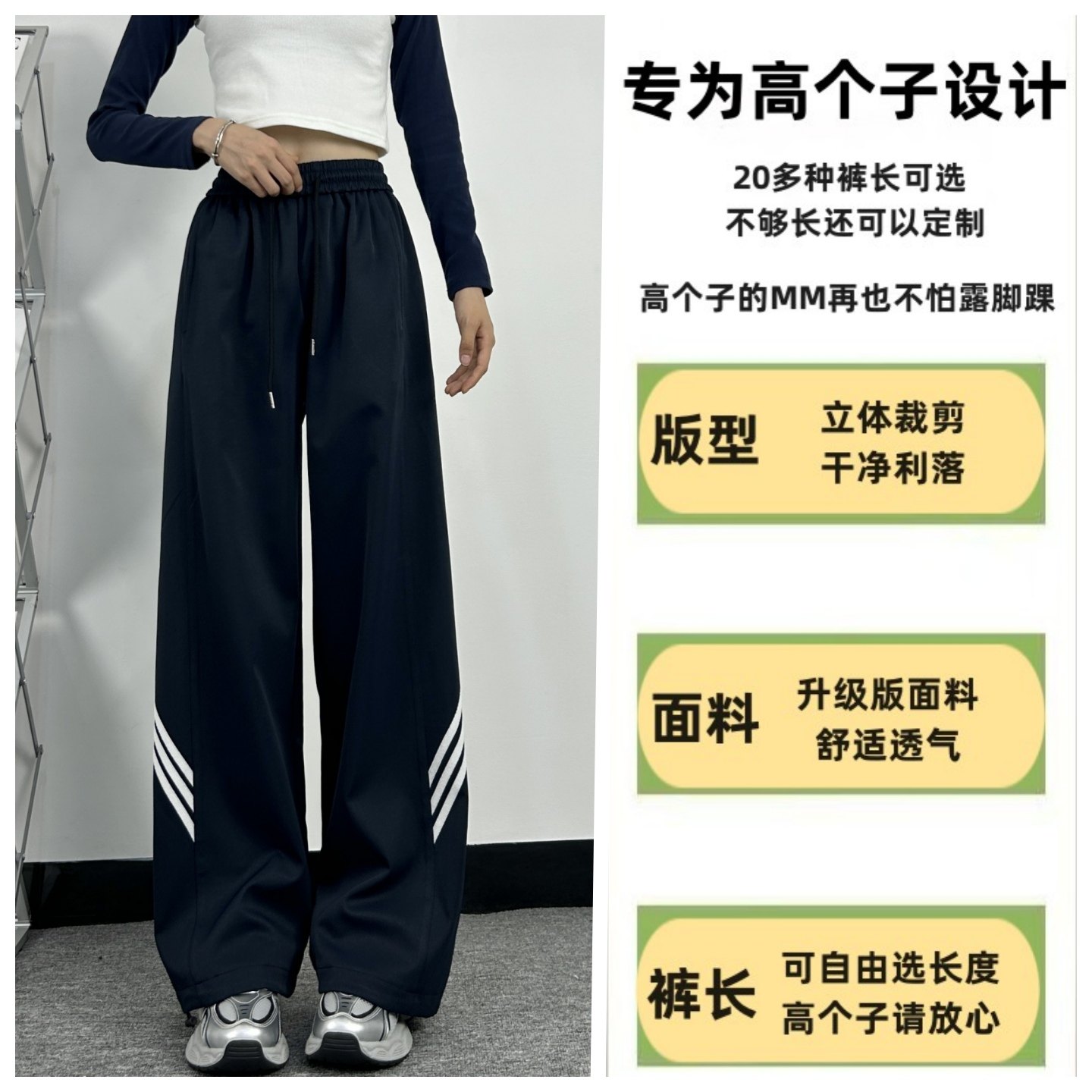 高腰宽松加绒休闲阔腿裤 藏青色超长版 裤 女春秋直筒工装 速干运动裤