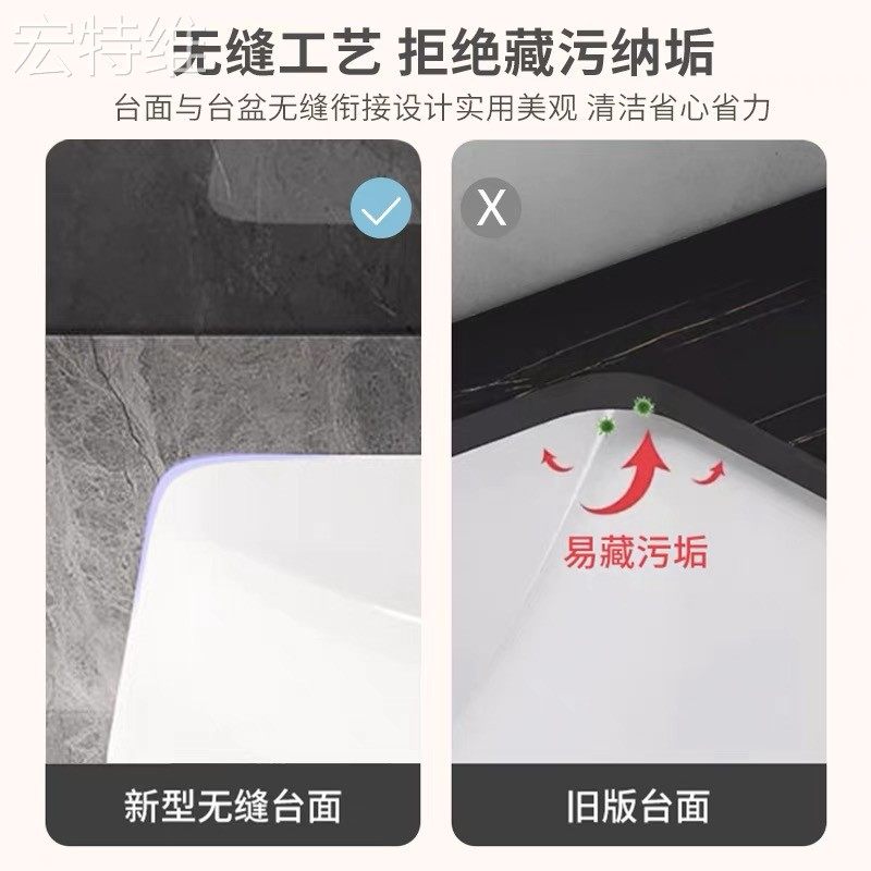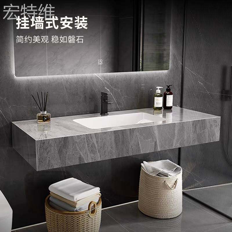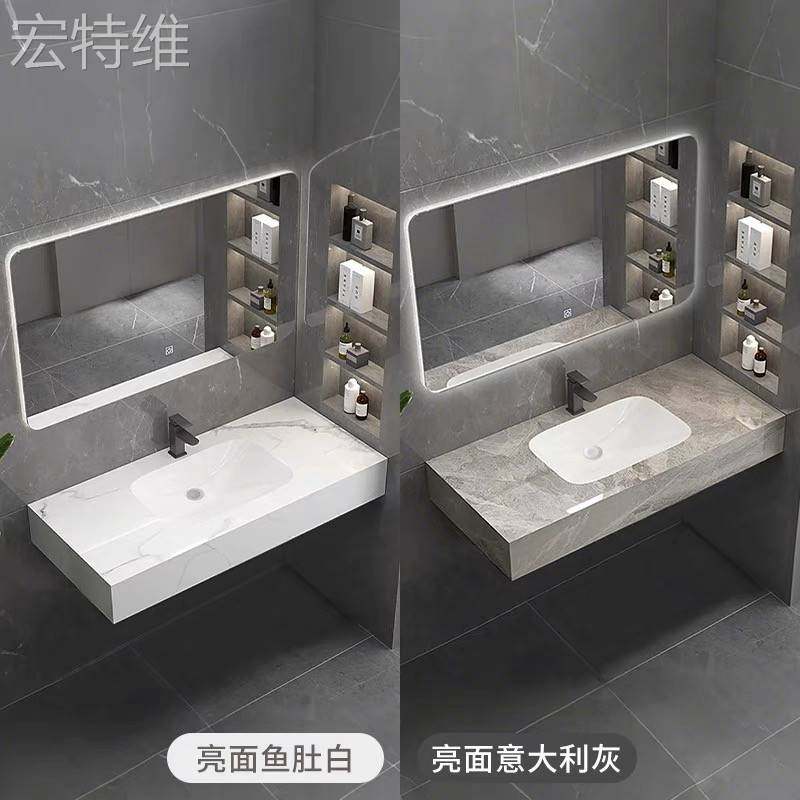宏特维岩板陶瓷一体无缝洗手盆酒店悬挂洗漱台卫生间洗脸摆件饰品