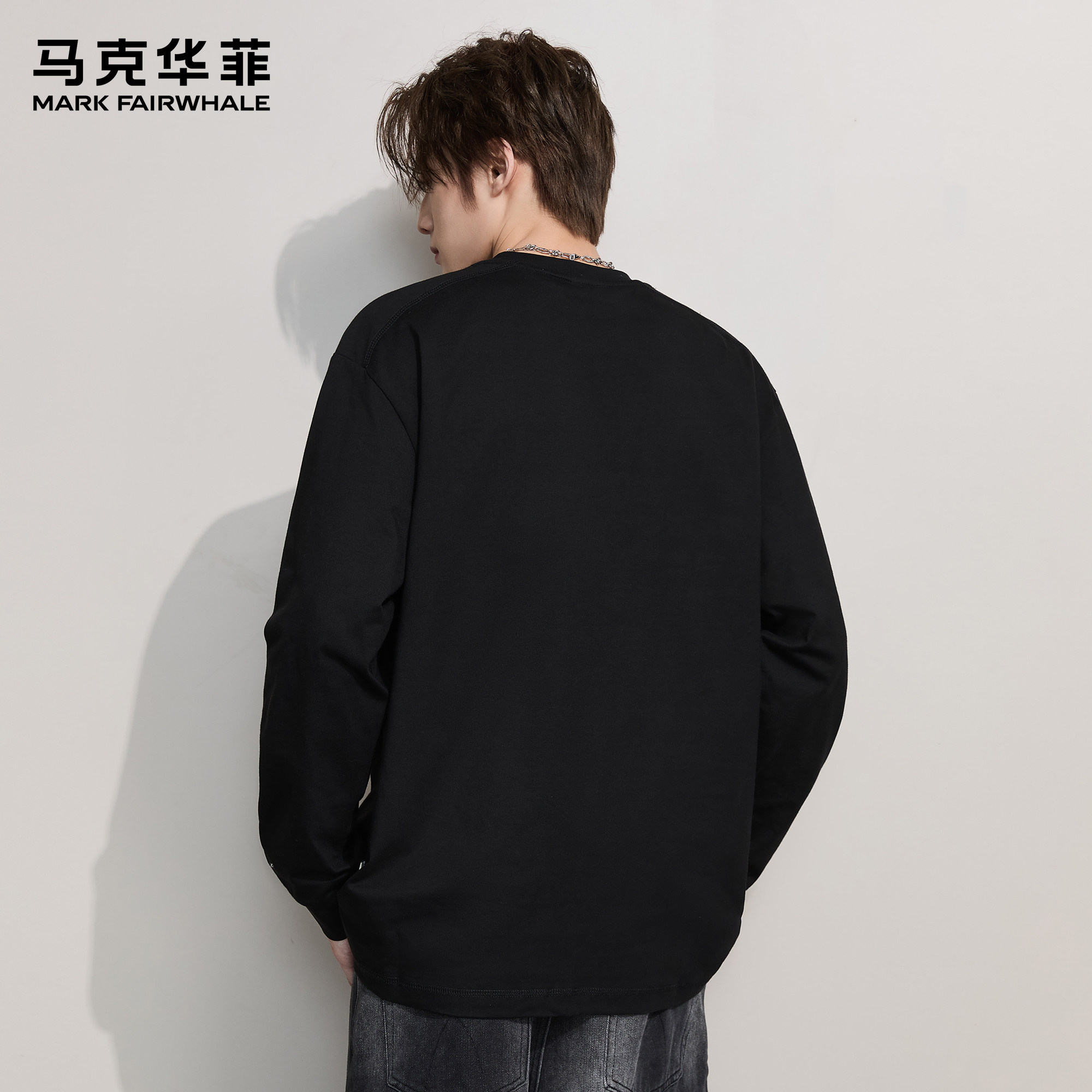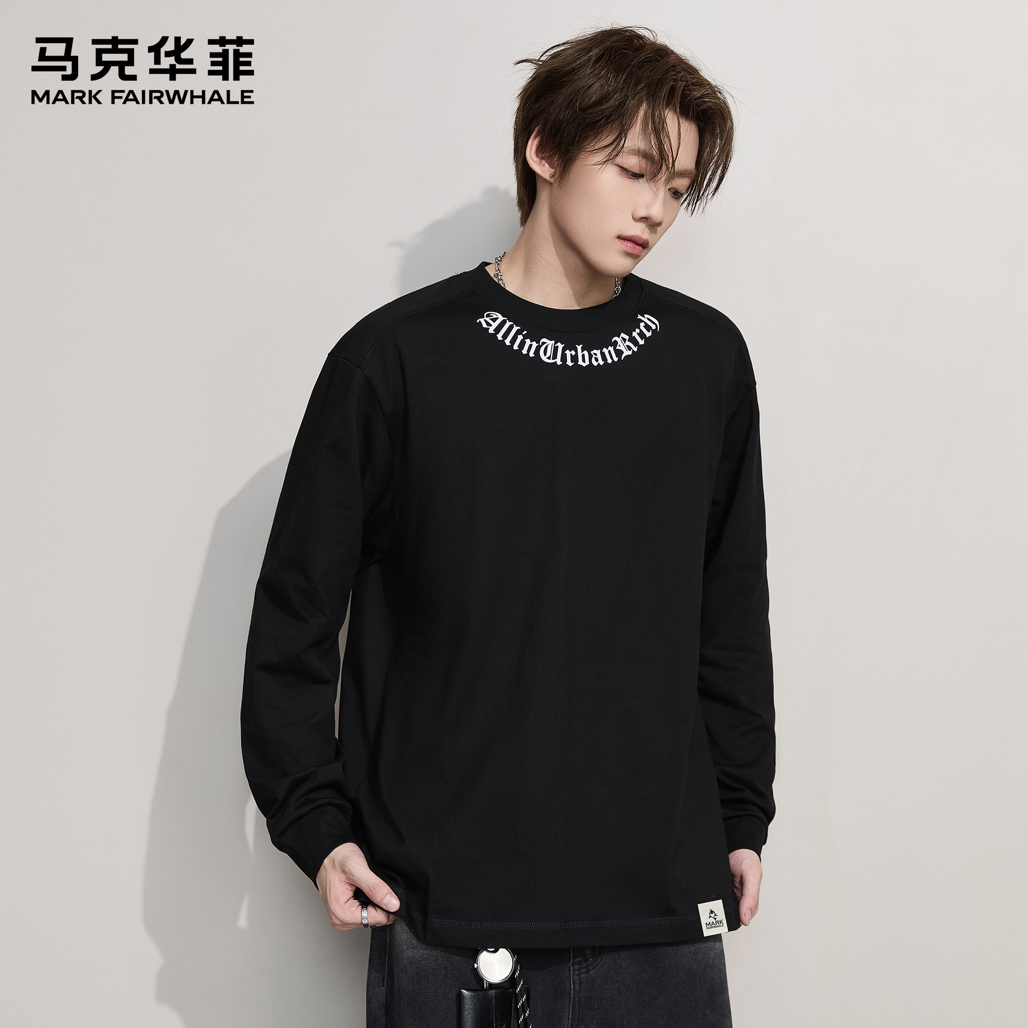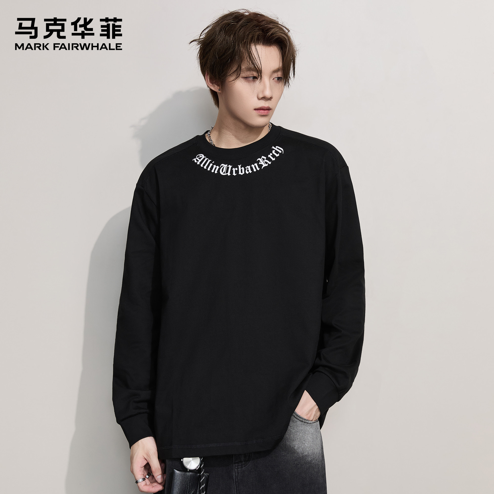 潮牌高街hiphop刺绣设计感圆领套头衫 新款 t恤男秋季 马克华菲长袖