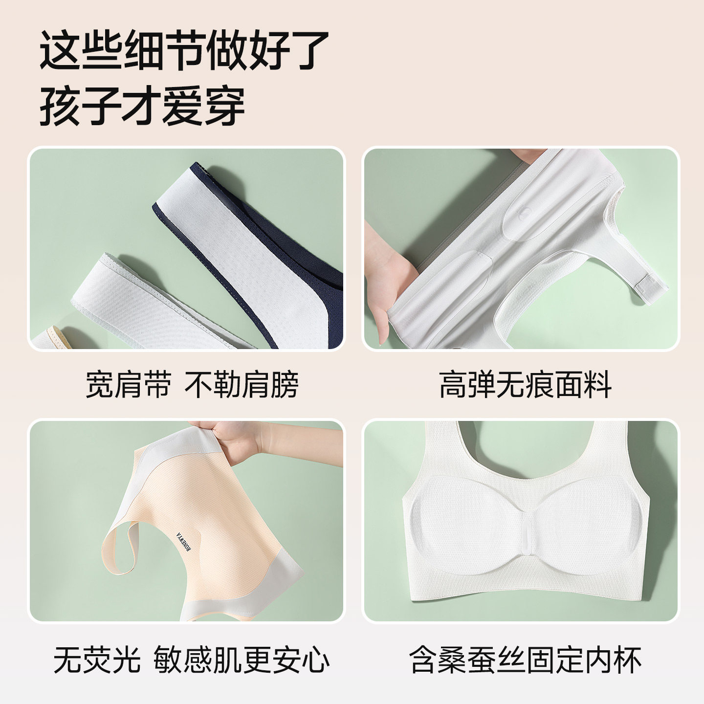 婷美 少女内衣学生初中高中生发育期女童文胸青少年 蚕丝抑菌杯