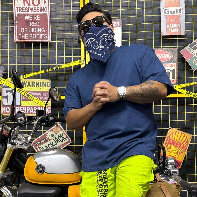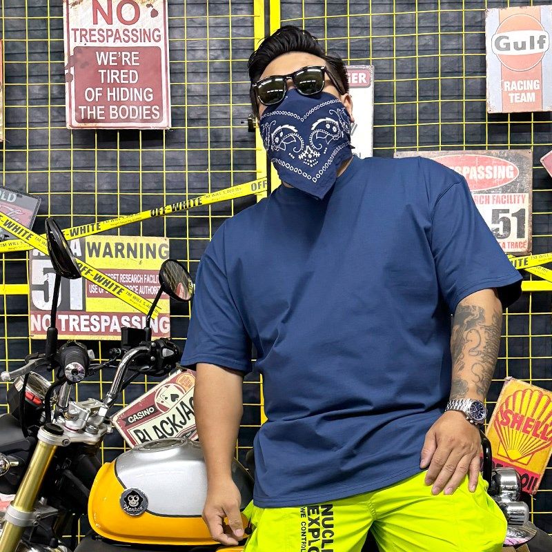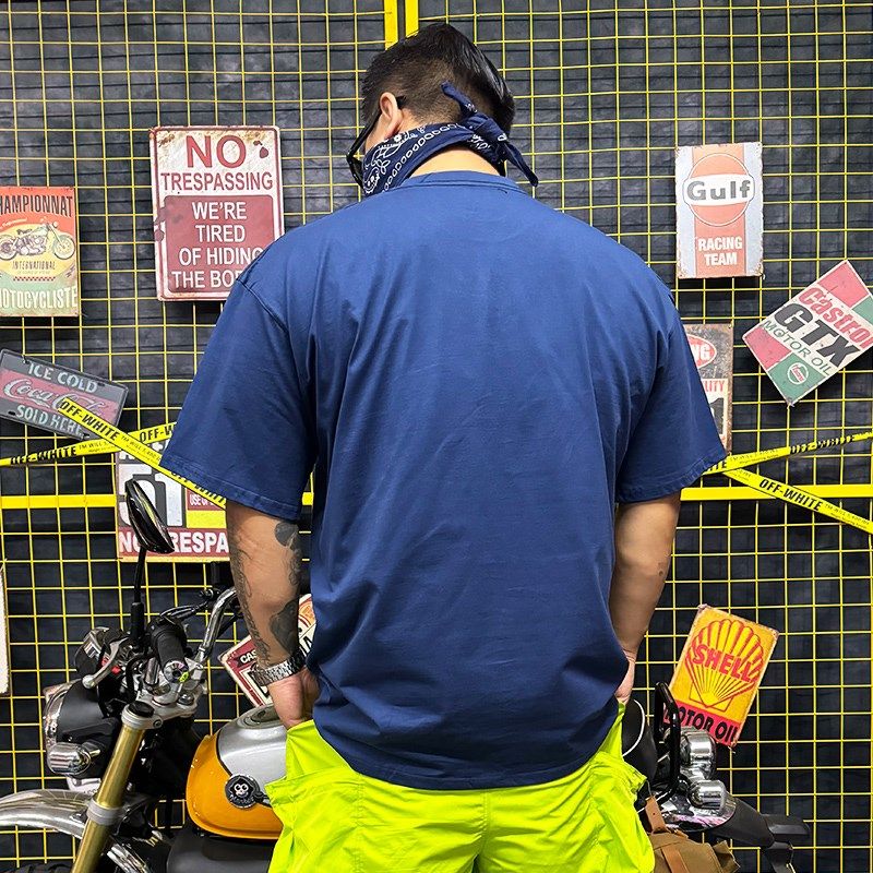 核爆炸普鲁士蓝流行色250克全棉纯素色宽松休闲加大码 t恤 打底短袖