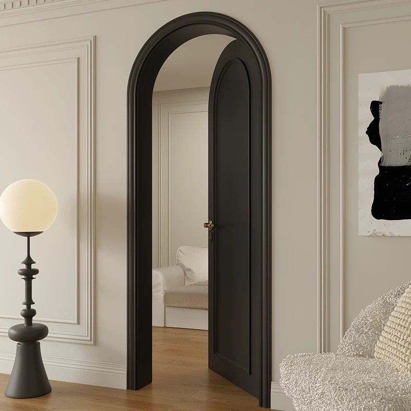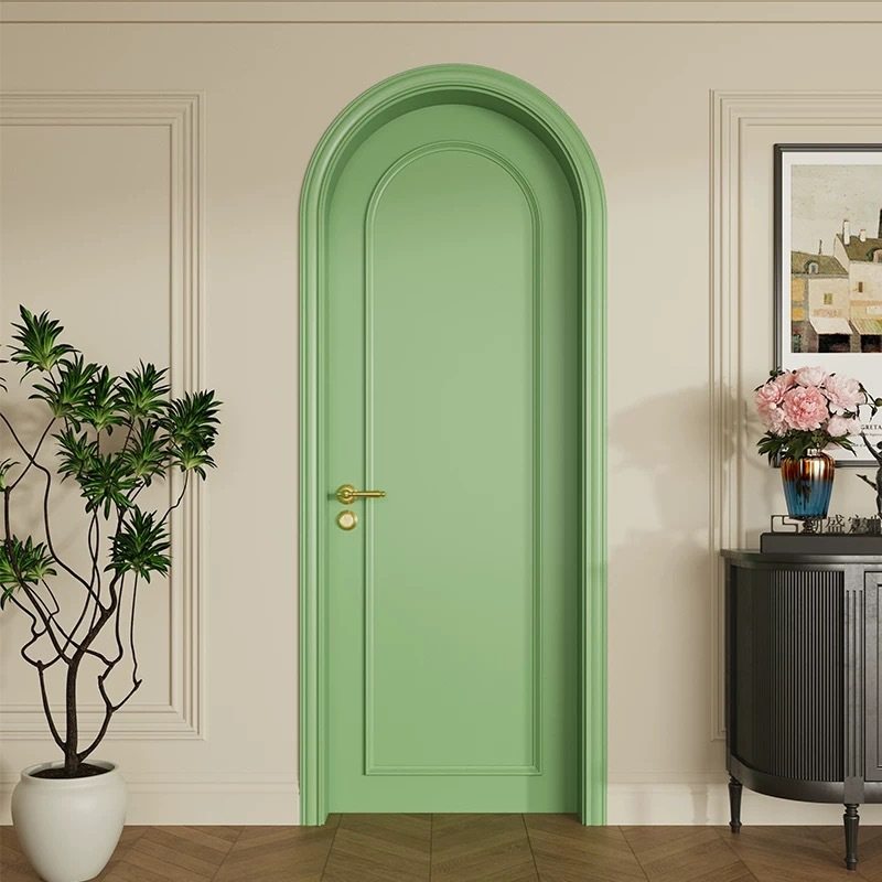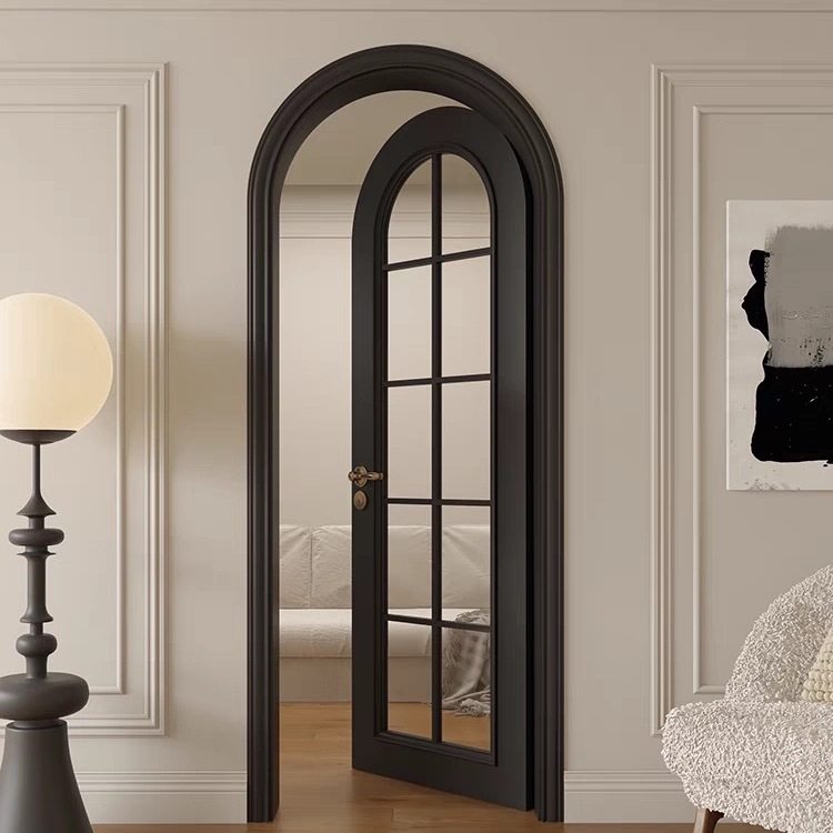 烤漆卧室复古门 网红玻璃室内平开门 法式 圆弧拱形门造型