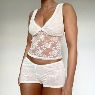 款 清新吊带甜辣遮肉简约 蕾丝雪纺背心外穿锁骨2025爆款
