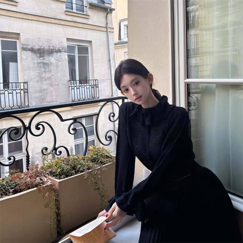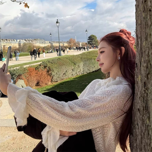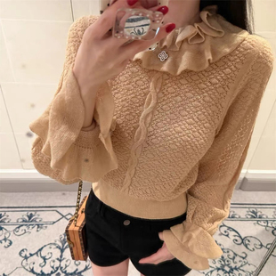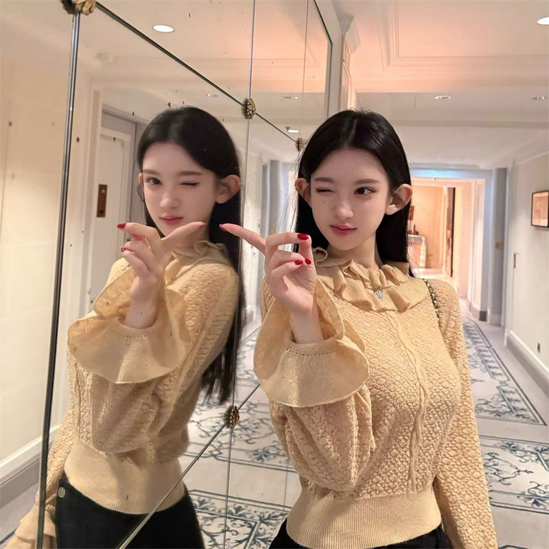 樊樊「冬日巴黎」进口机器织就花型 香香感优雅花边领小香针织衫