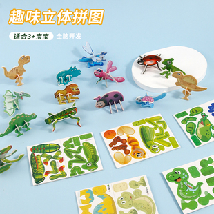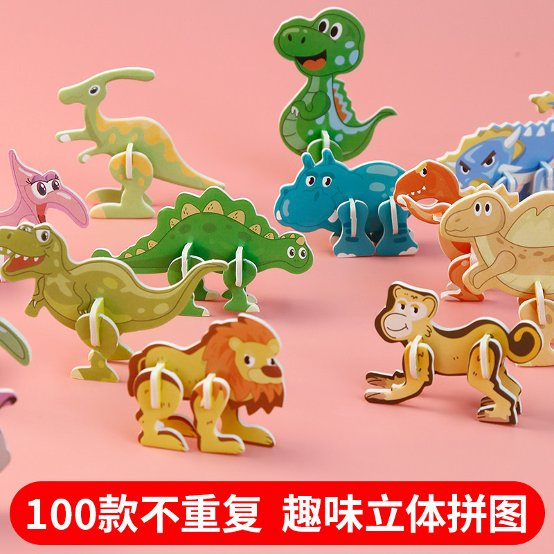 趣味3d立体拼图3到6岁动物益智儿童手工diy玩具幼儿趣味恐龙模型