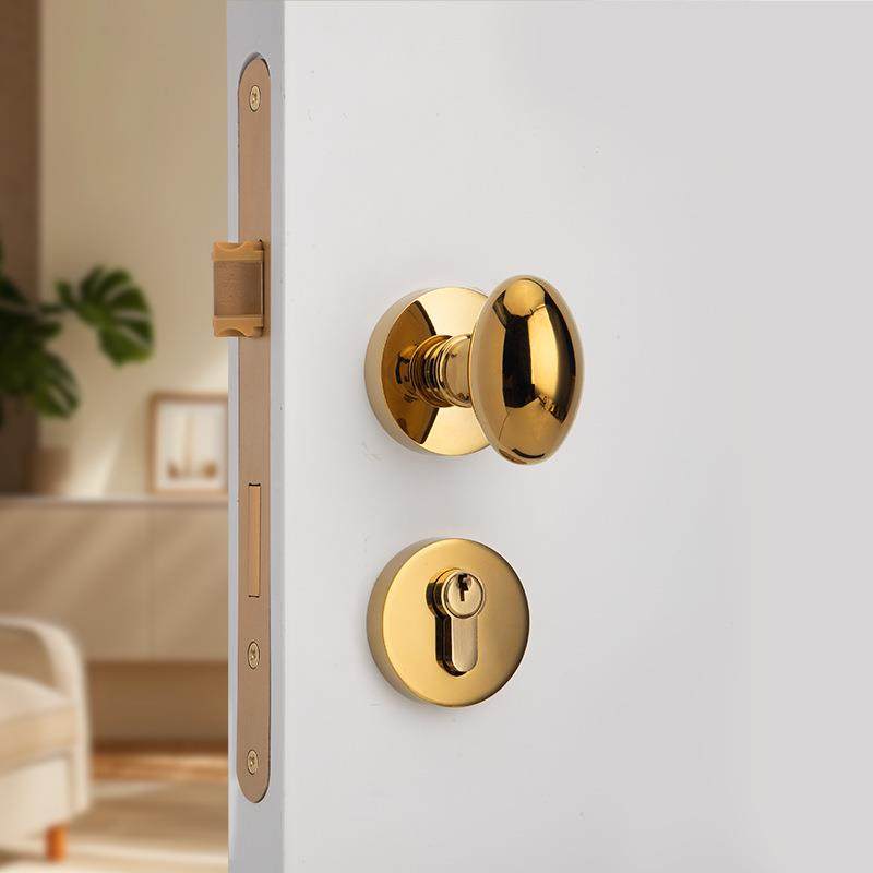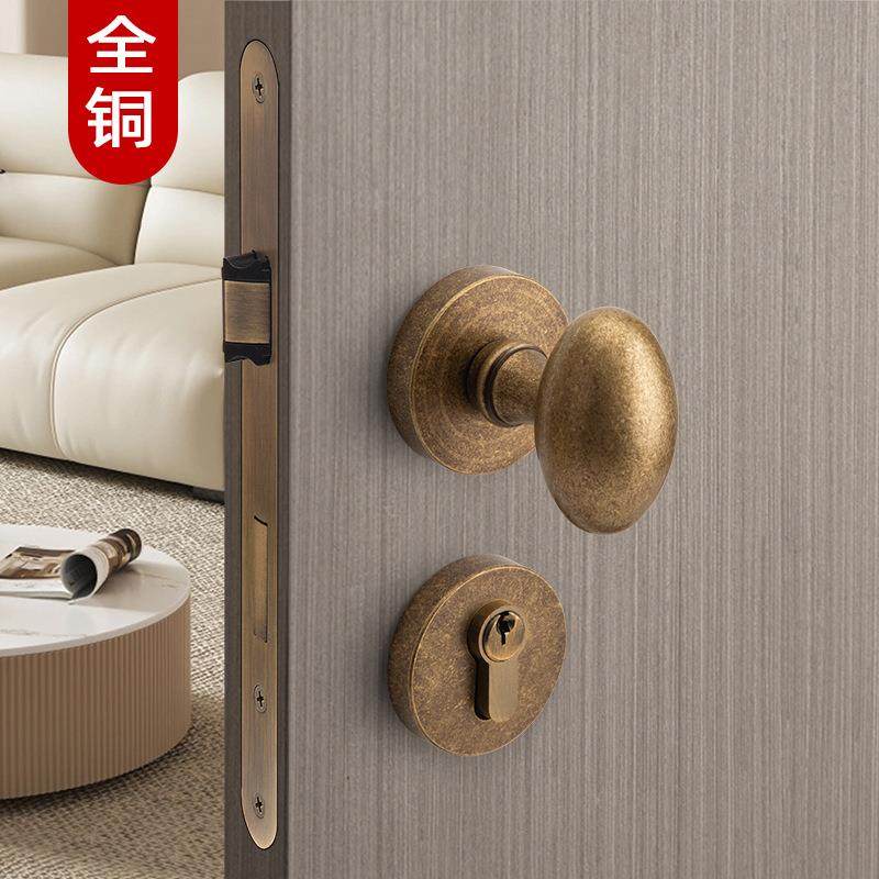 美工厂货铜锁室内静分体锁家用振古铜球形HAL式 复古源音双开门门