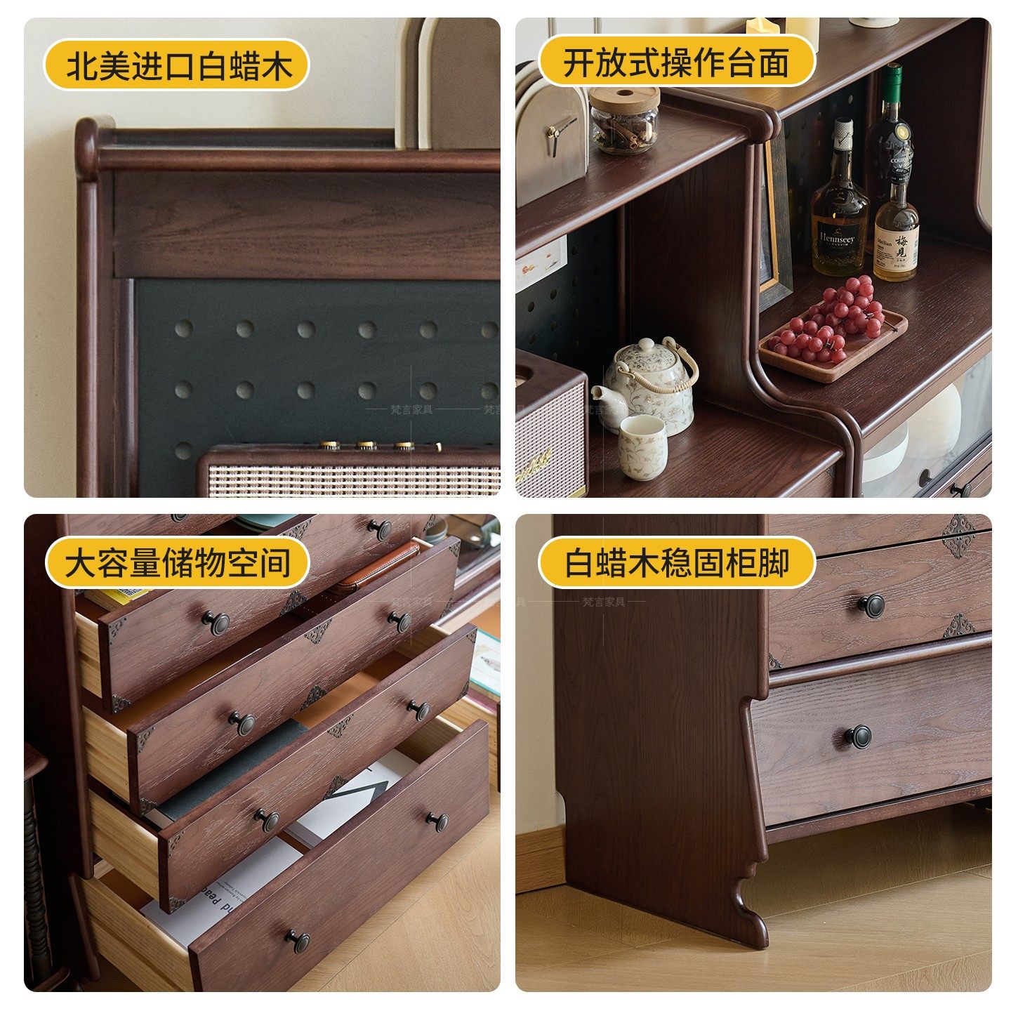 厨房餐边柜复古边柜客厅置物柜落地橱柜咖啡靠墙一体储物柜茶水柜