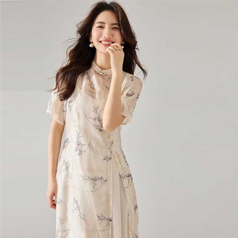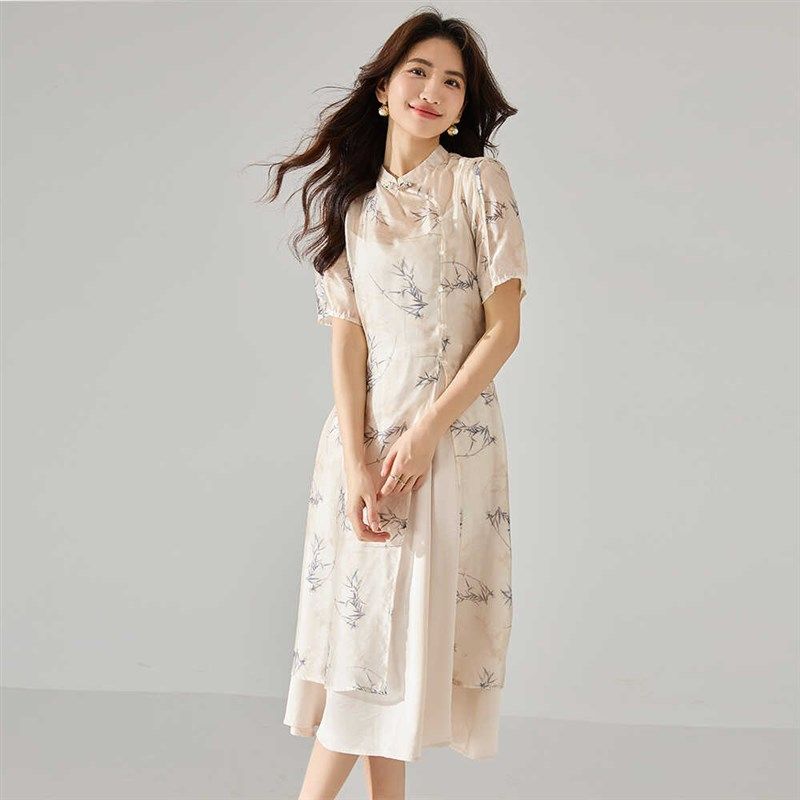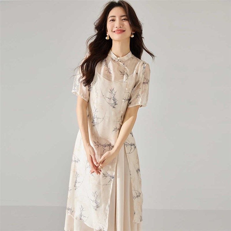 妈妈连衣裙夏季 国风禅意衣服40岁中年气质盘扣两件套裙子 新中式