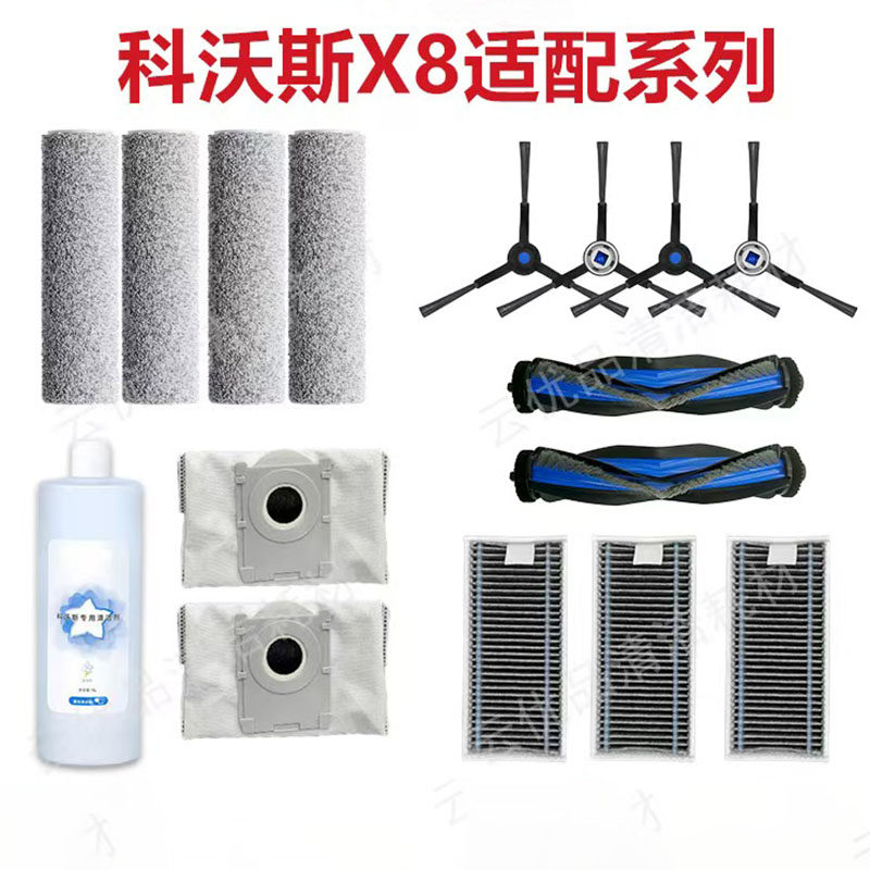 适配科沃斯扫地机器人配件耗材x8pro plus滚筒拖布边刷滤芯清洁液
