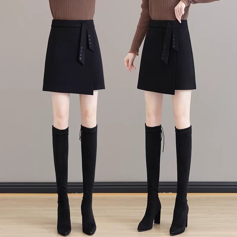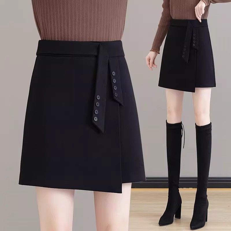 灰色毛呢半身裙女2025秋冬款 高腰显瘦A字短裙宽松小个子包臀裙子