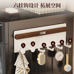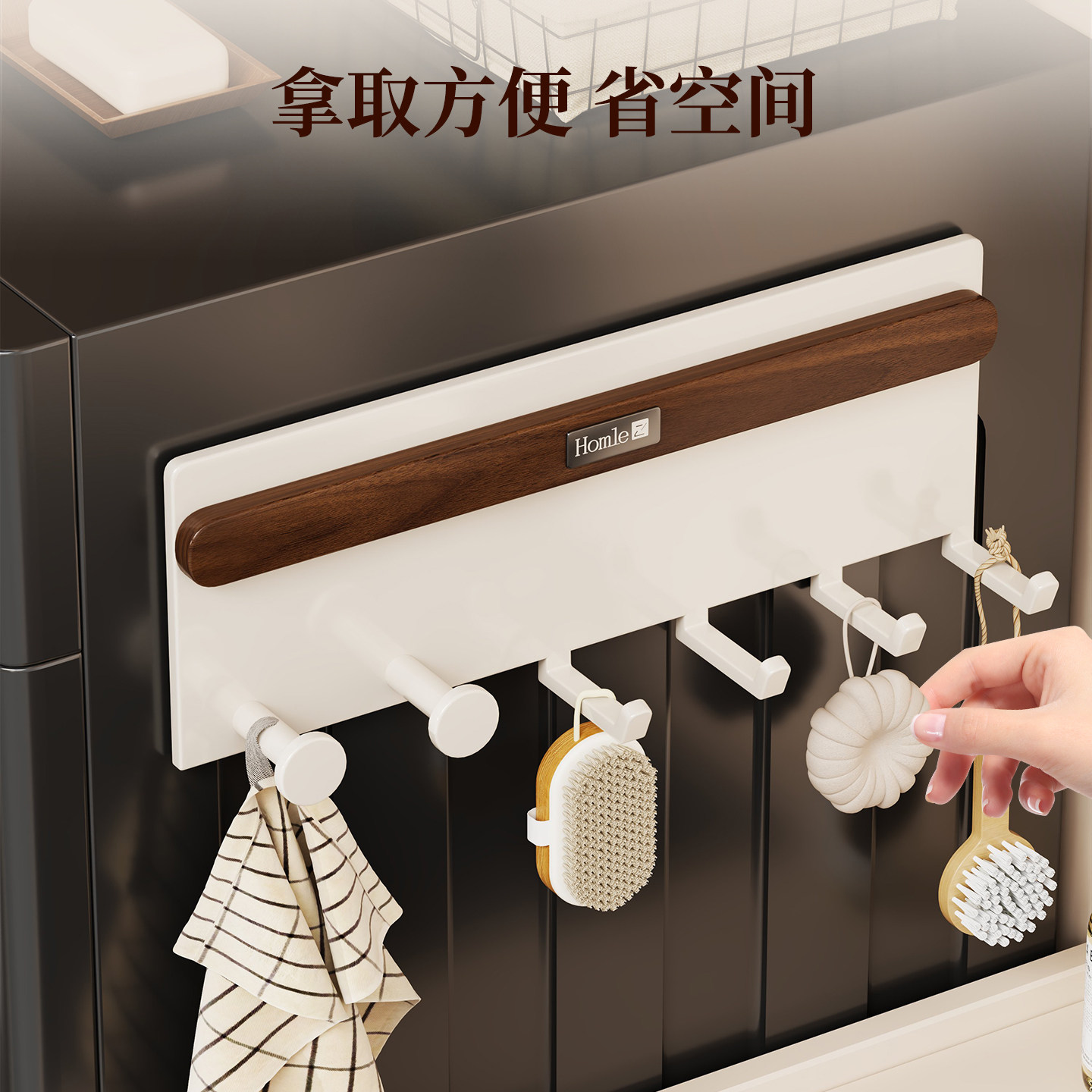 实木洗衣机置物架挂钩衣架阳台收纳家政拖把清洁工具磁吸式 放置架