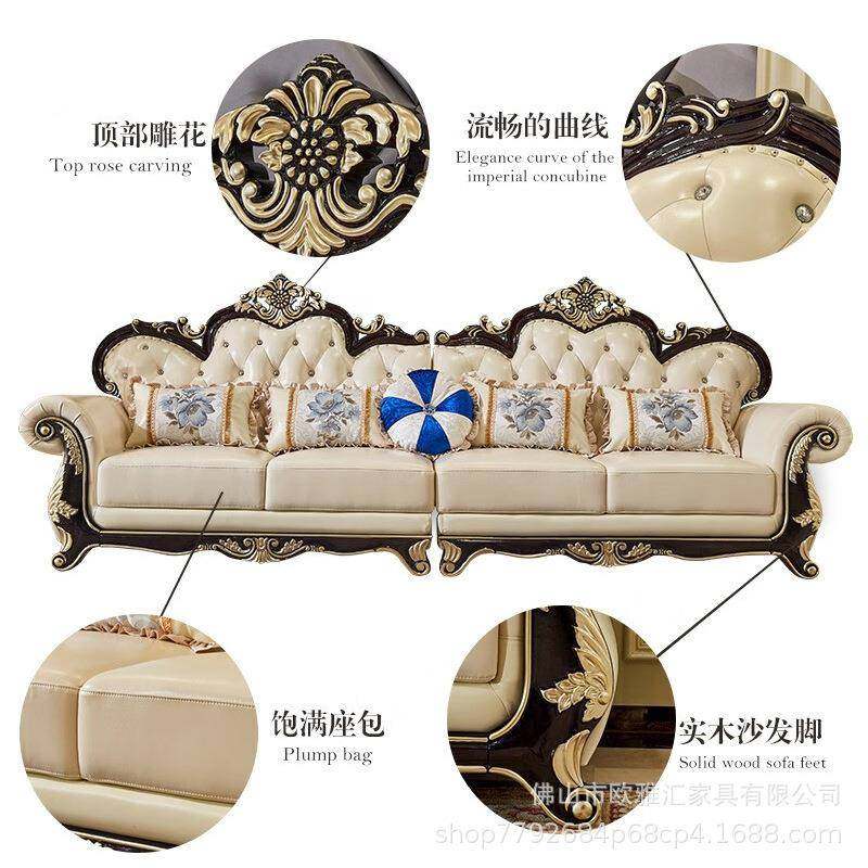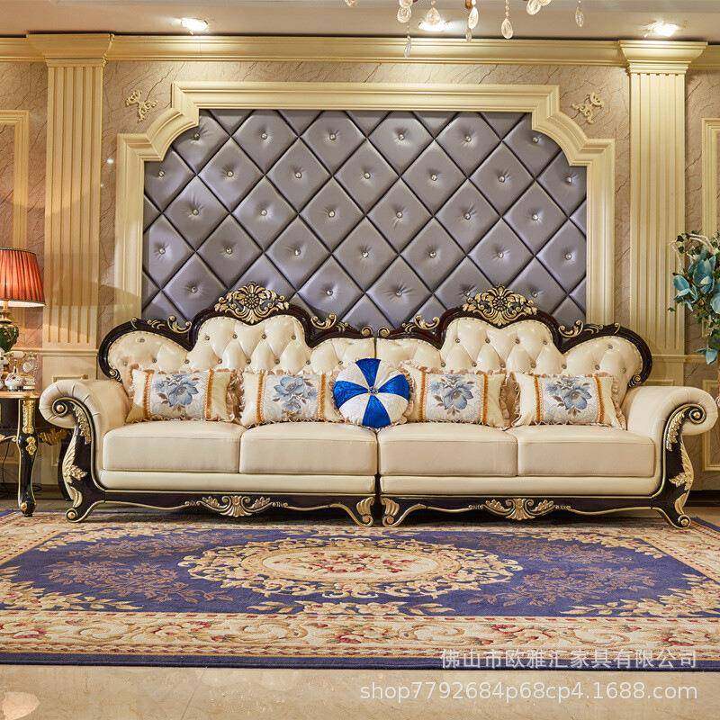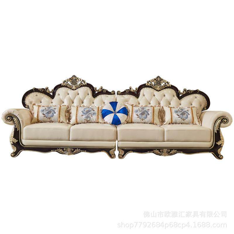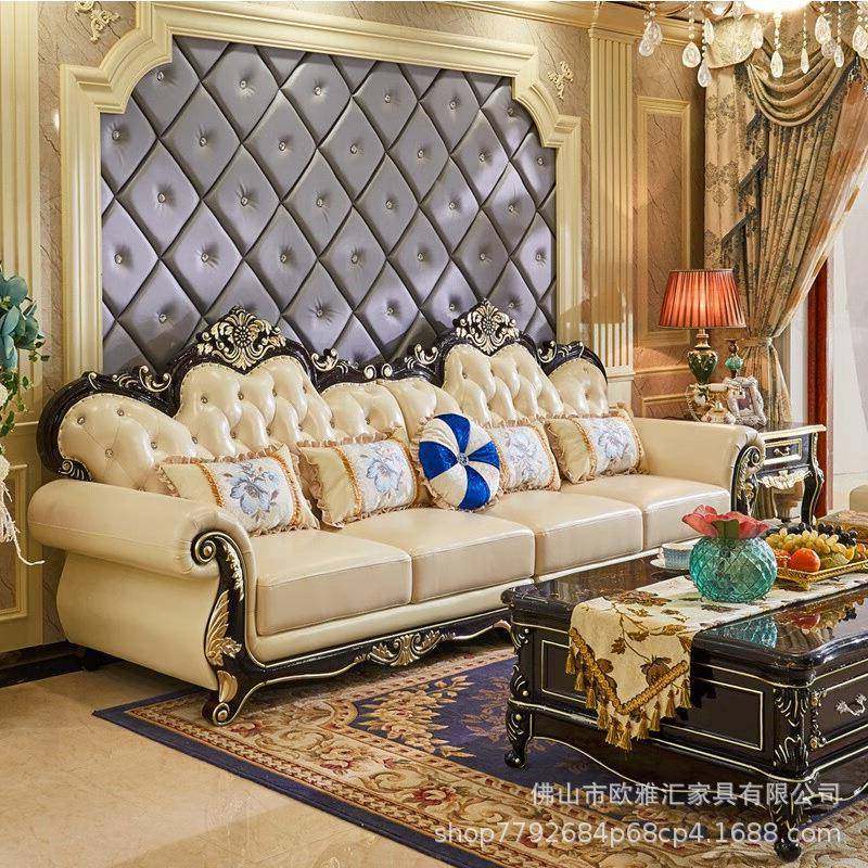 美式 沙发组合客厅小户型四人位直排沙发实木家具 轻奢真皮沙发欧式