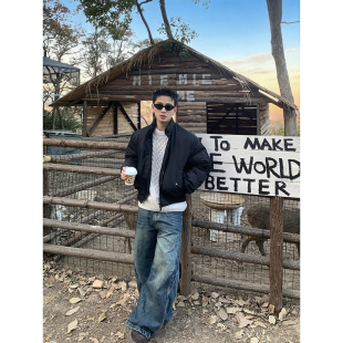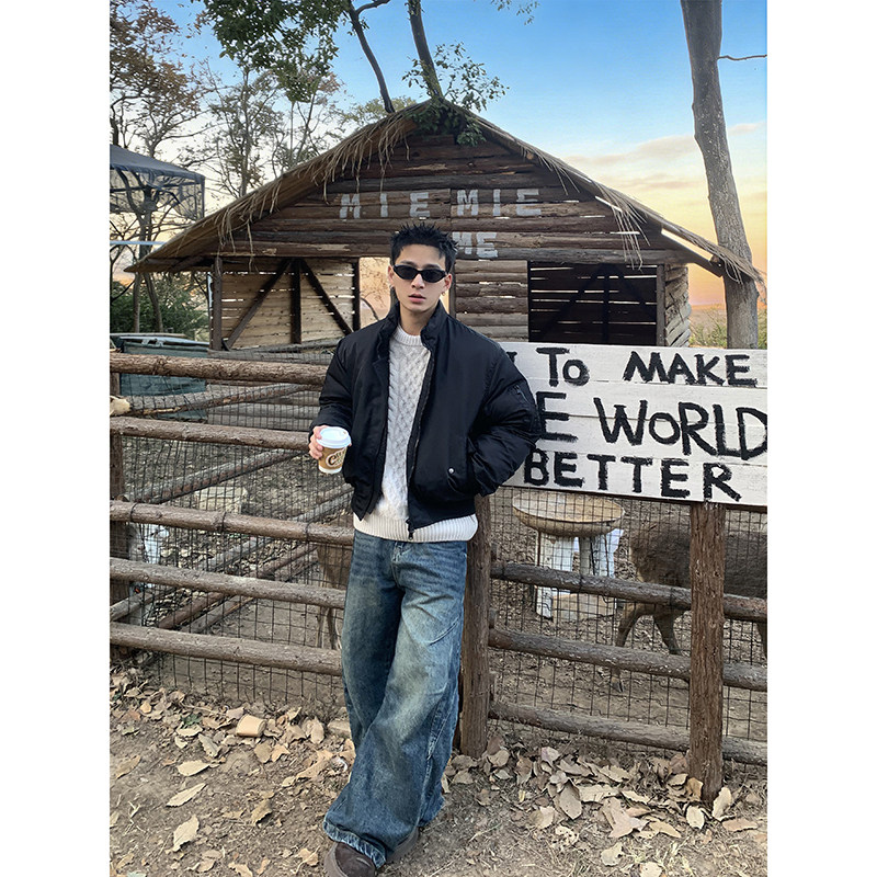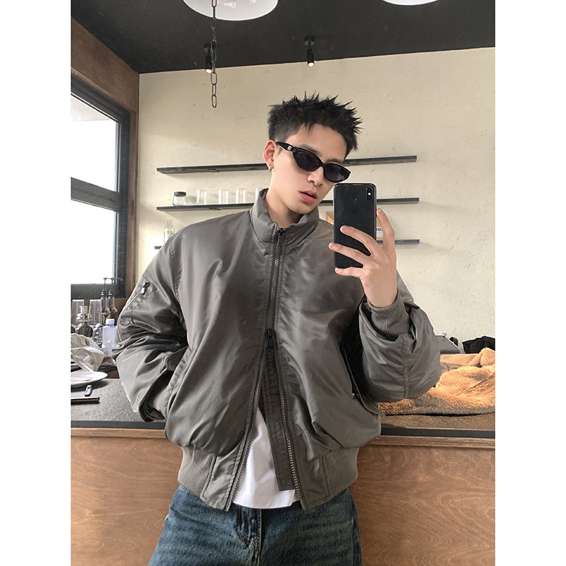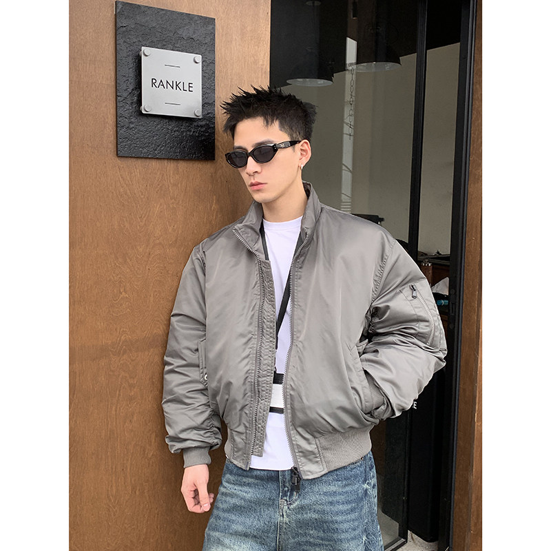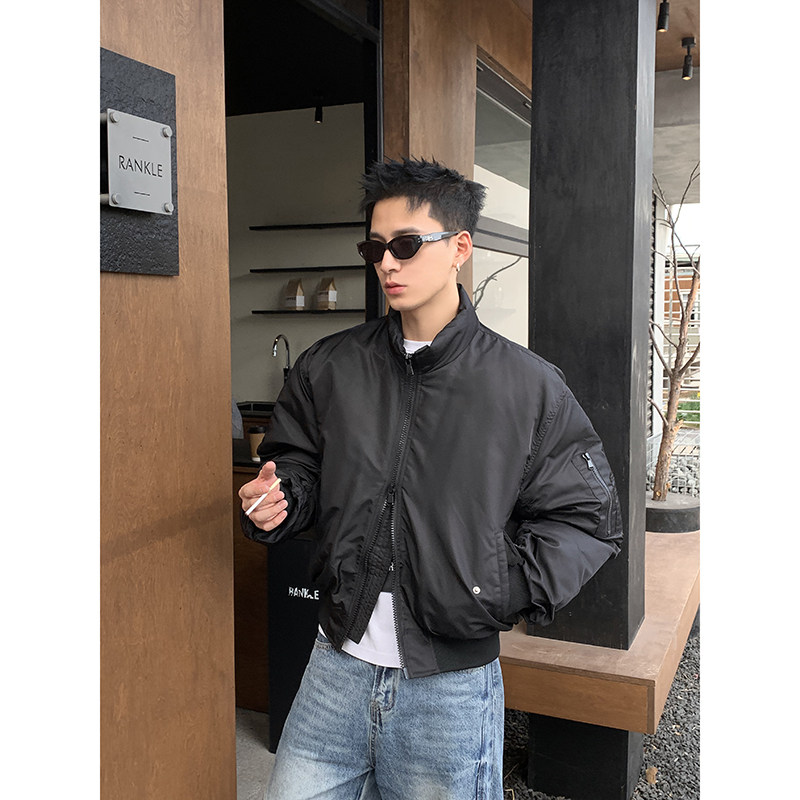廓形棉衣 加厚短款 PLTH 高级感立领双拉链飞行夹克棉服外套男冬季