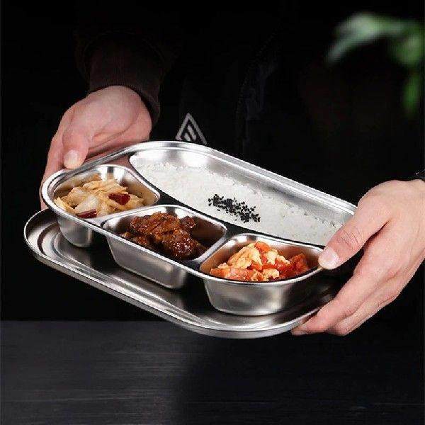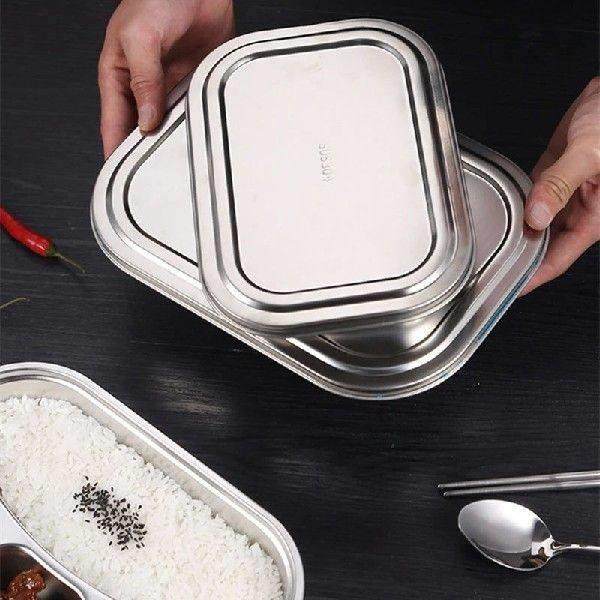 Dinner Plate Lunch Stainless With Divided Box Lid Steel