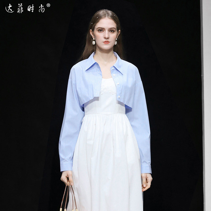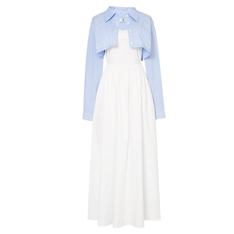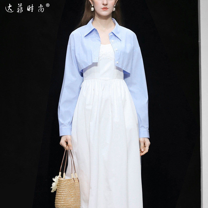 新款 优雅吊带连衣裙清纯长裙套装 时尚 法式 百搭条纹衬衫 2026春季