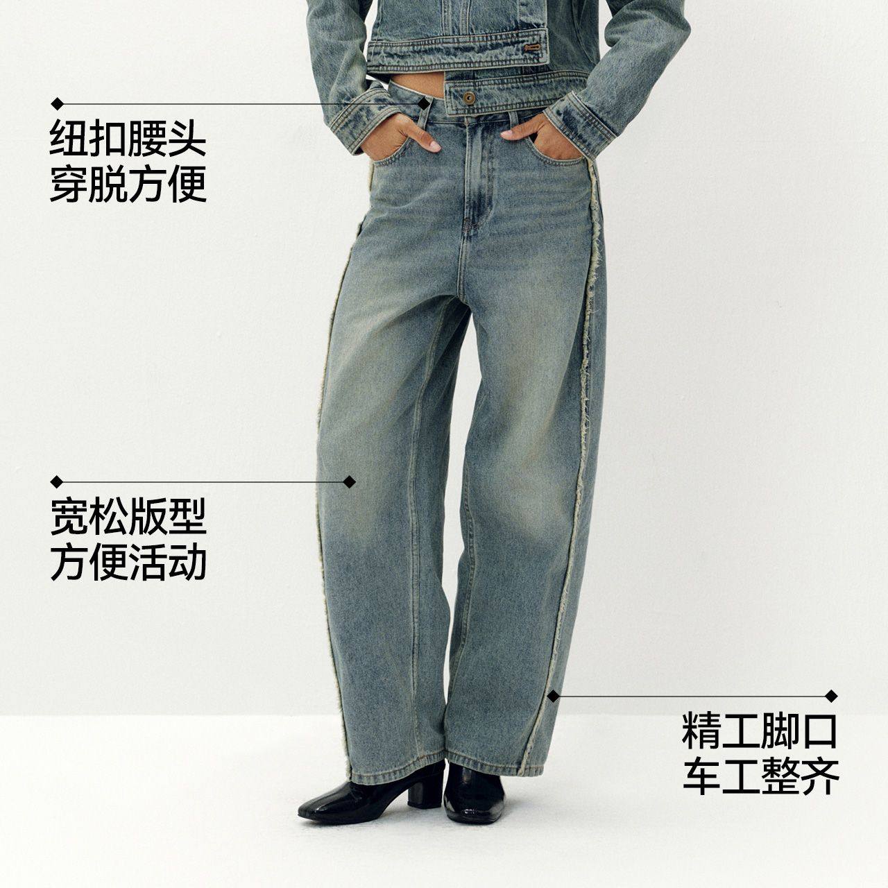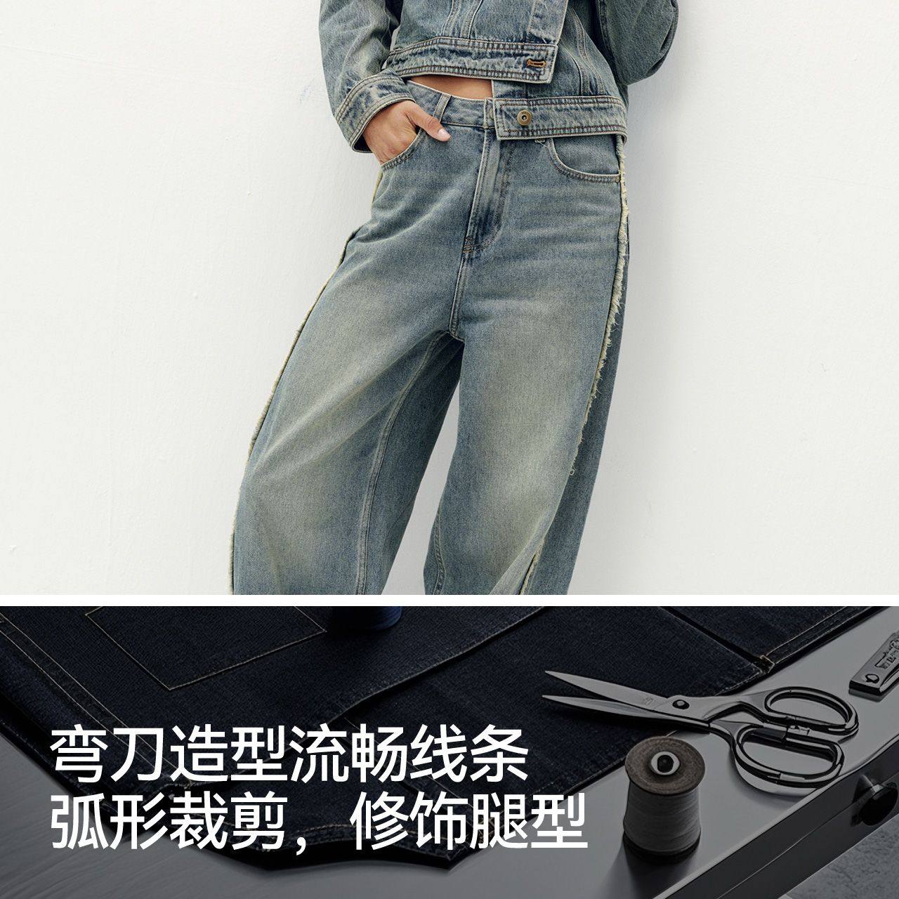 商场同款 新款 森马牛仔裤 2025秋季 103525124012B 女宽松弯刀裤