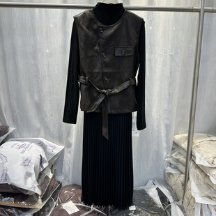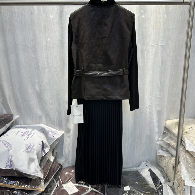 PU皮马甲 套裙气质高级感无袖 百褶连衣裙两件套25689 新款 2026春季
