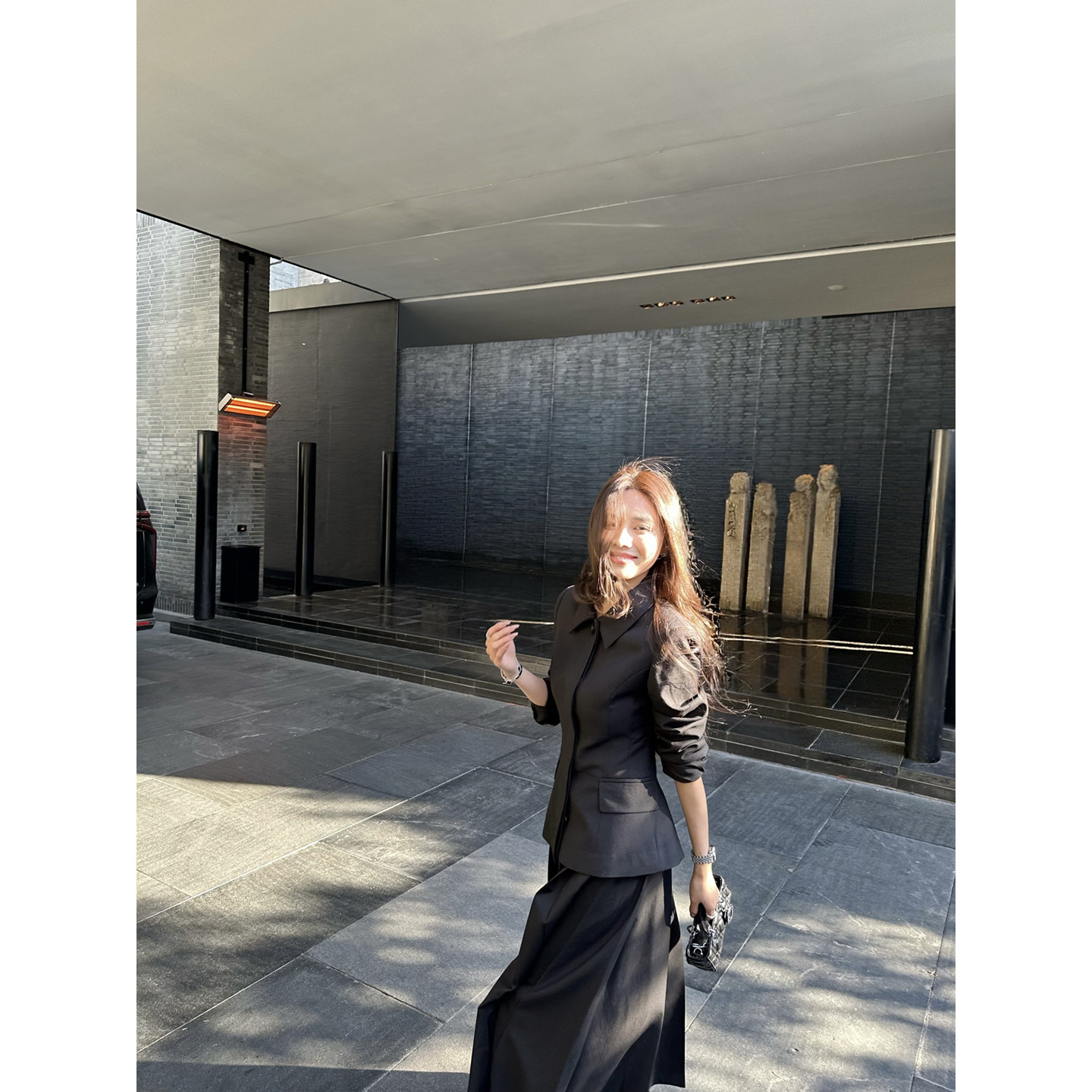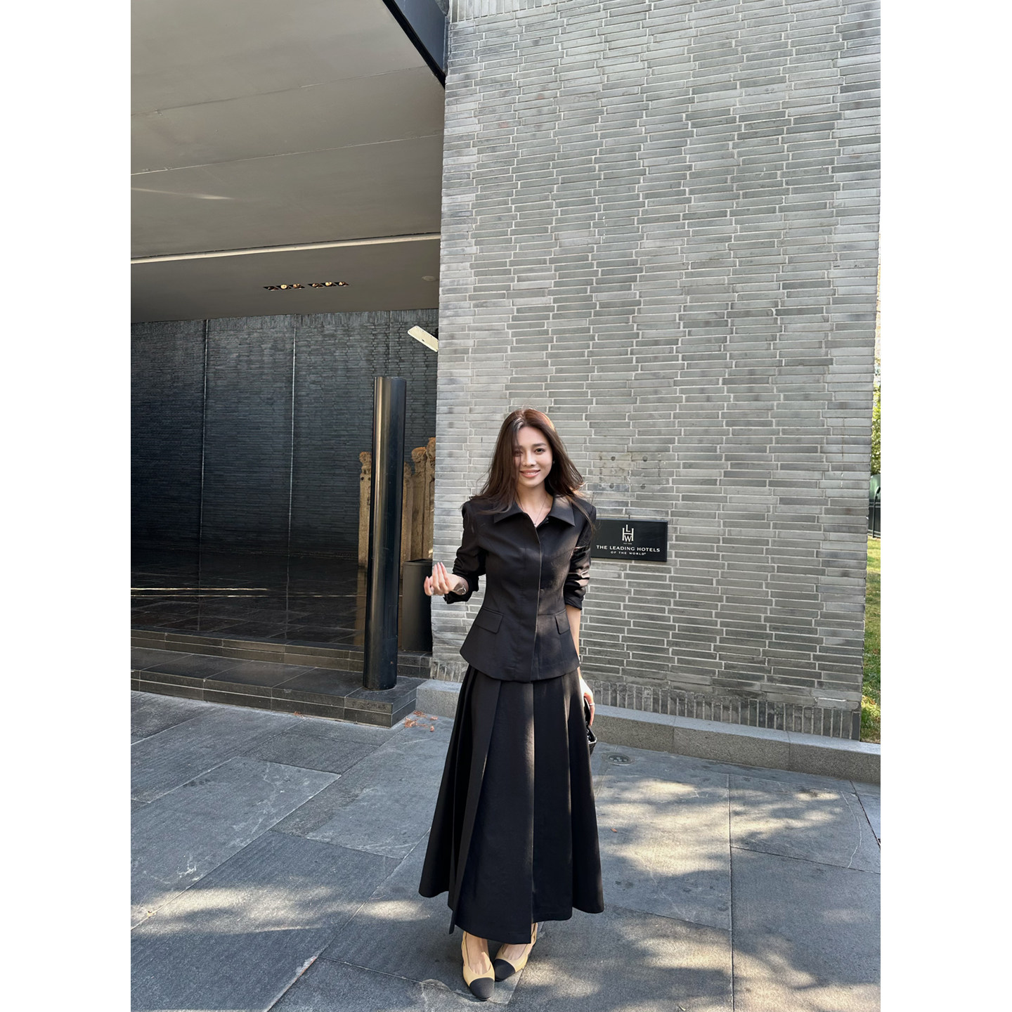 外套女春季 黑色老钱风收腰西装 百褶半身裙 lady日记 NanaByNana