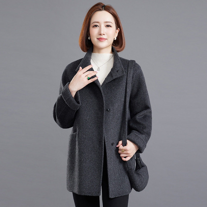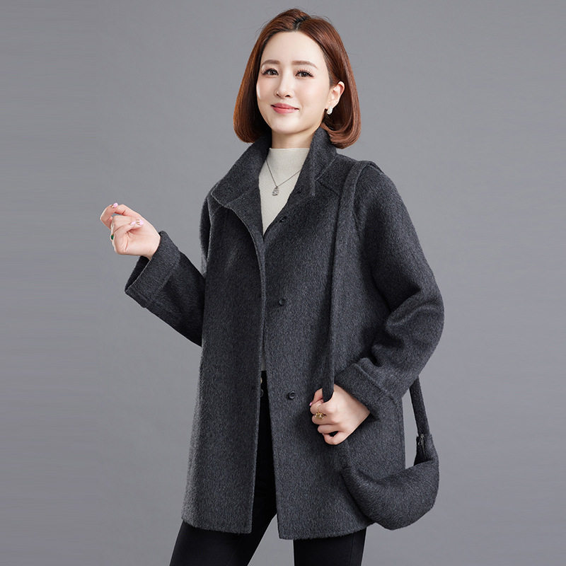 双面呢外套2025秋冬新款 宽松大码 大衣中长款 韩版 小个子女装 背包款