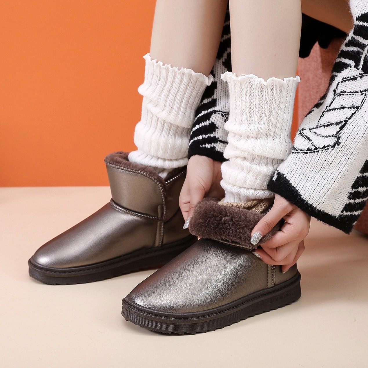 防滑保暖加厚加绒厚底雪YY52 男女同款 2026冬季 皮面防水一脚蹬棉鞋