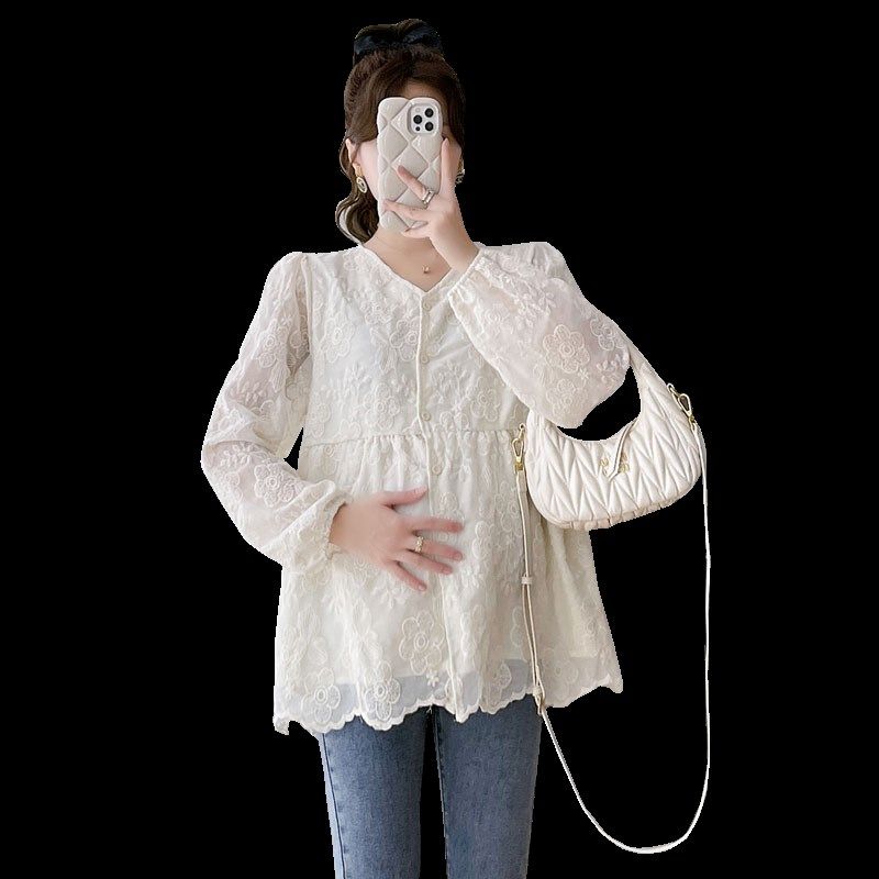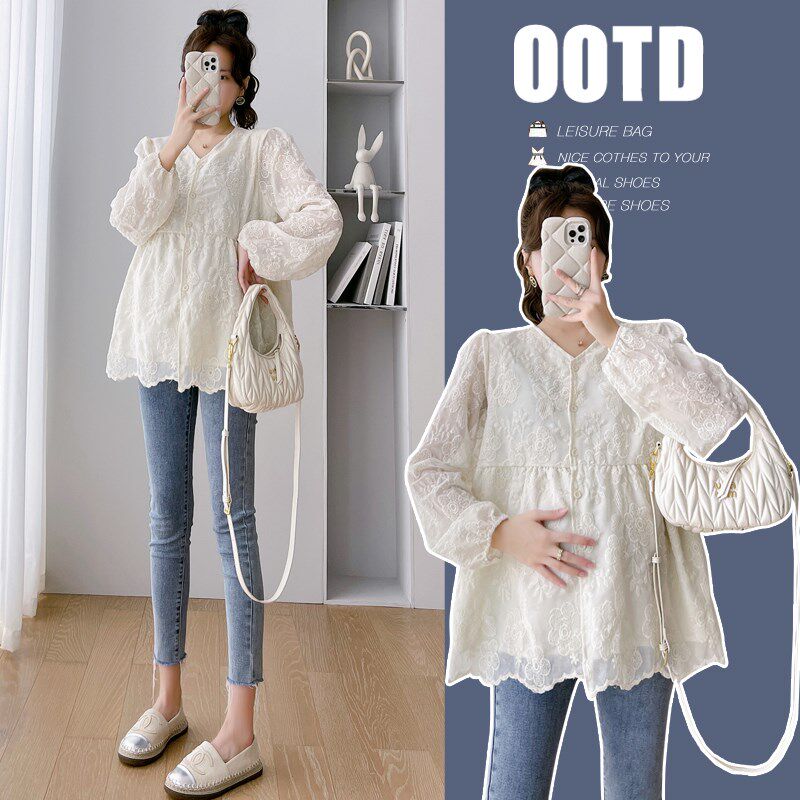 韩版 时尚 蕾丝刺绣长袖 上衣宽松休闲怀孕衬衫 衬衣春 孕妇装 春季 春装