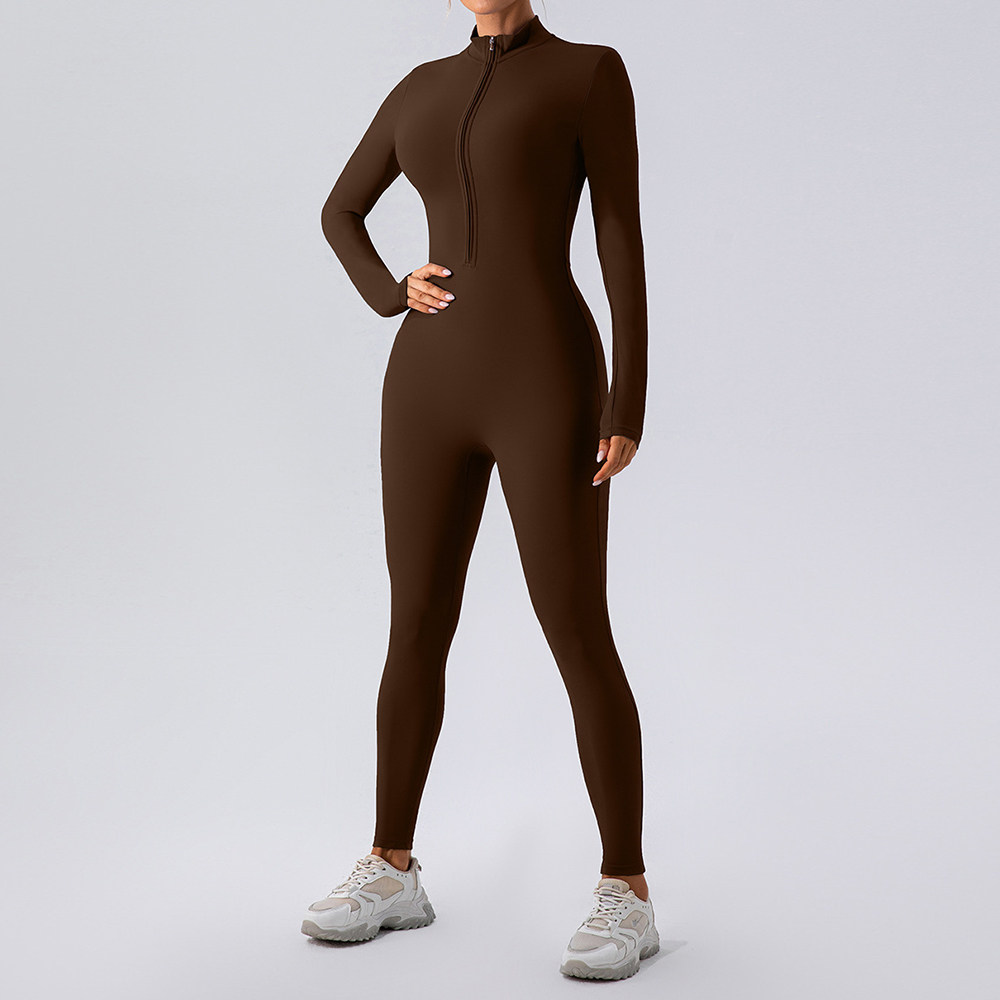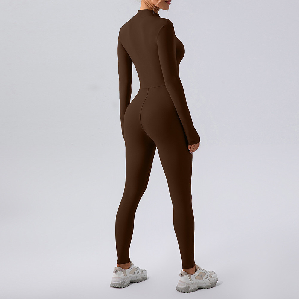 欧美无缝一体长袖 休闲运动连体衣 拉链连体瑜伽服收腰塑身紧身长裤
