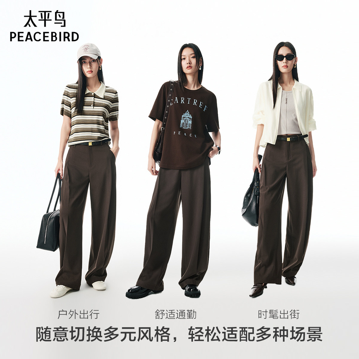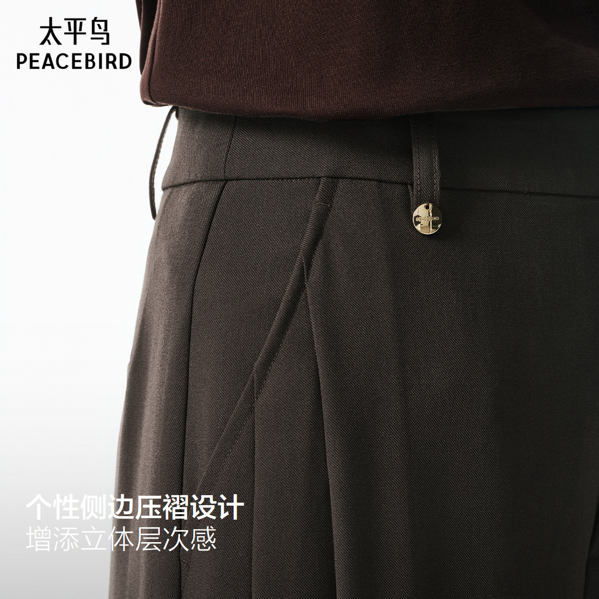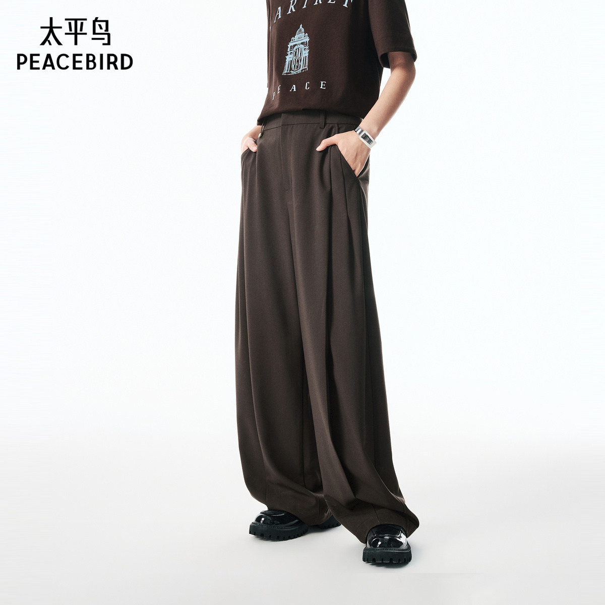 裤 太平鸟高腰休闲弯刀裤 压褶宽松阔腿茧型香蕉西装 新款 2025年秋季