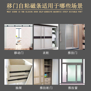 推拉门磁吸密封条橱柜推拉门x缝防撞防尘减震平推门磁条自粘式 胶